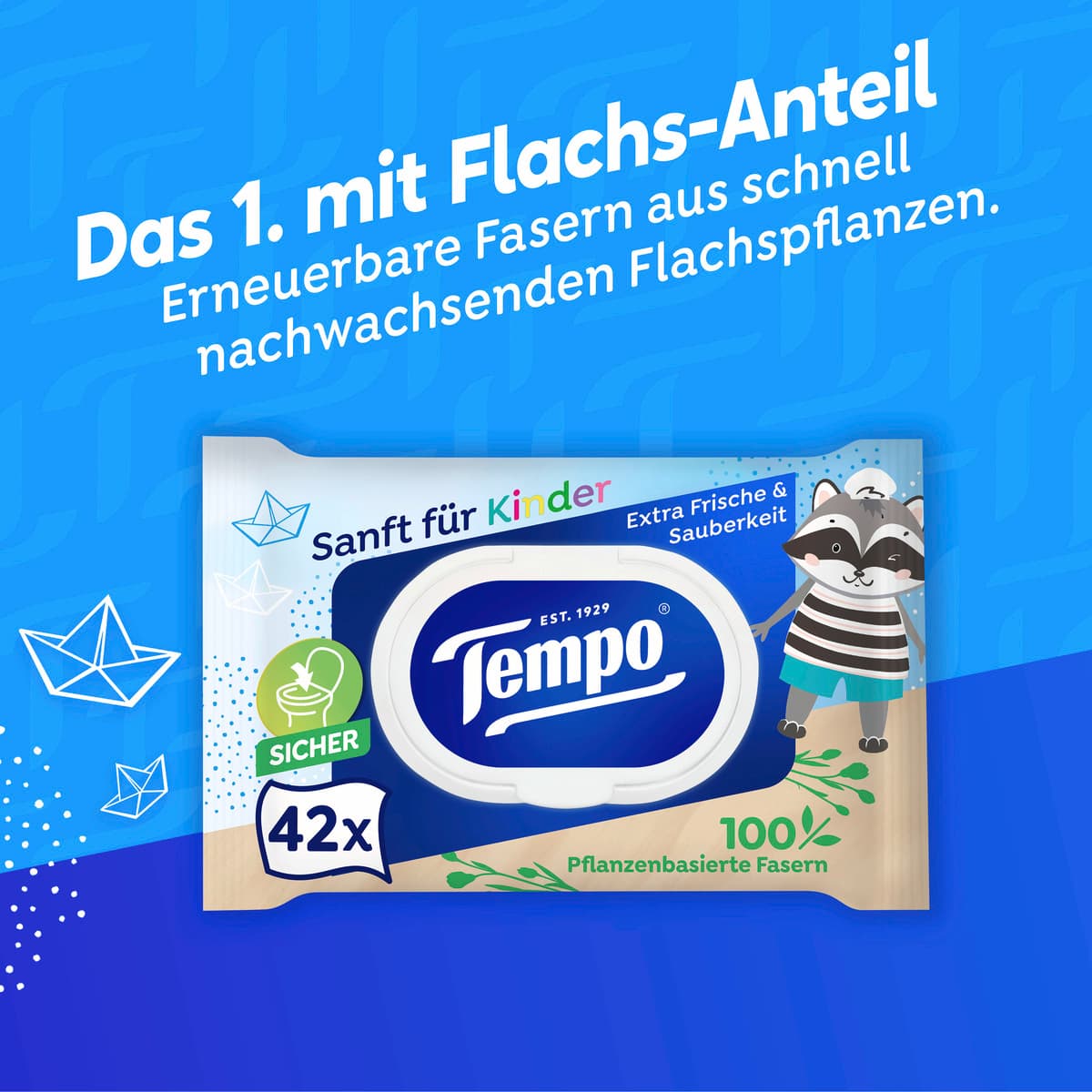 * Das Tempo-Substrat enthält mind. 5% Flachsfasern. Dat 1. mit Flachs-Anteil in Deutschland,Österreich, der Schweiz