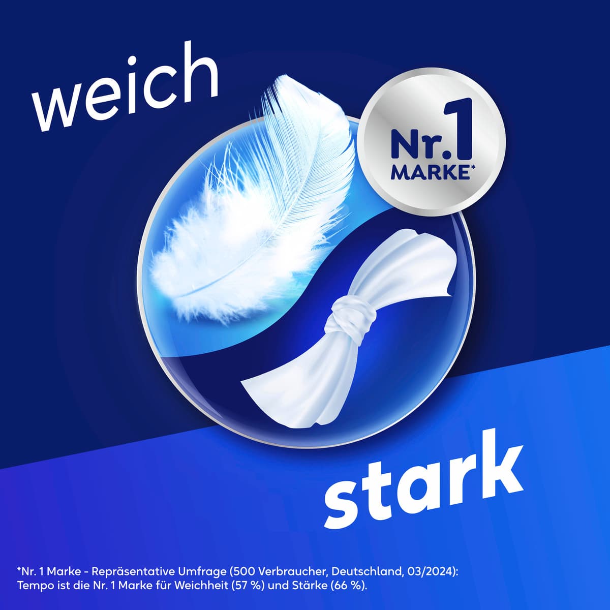 Zudem ist das gesamte Tempo Sortiment waschmaschinenfest. Die praktische Komfortöffnung ermöglicht eine einfache Entnahme der Päckchen aus den Großpacks.