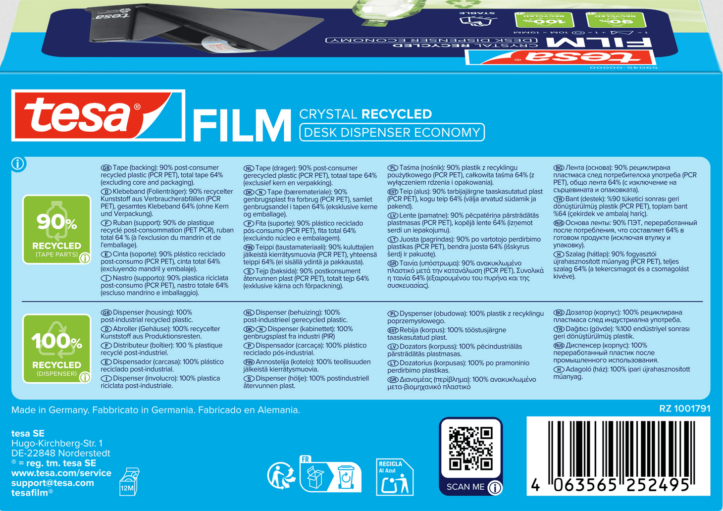 tesa® Tischabroller mit tesafilm CRYSTAL RECYCLED 10m x 19mm