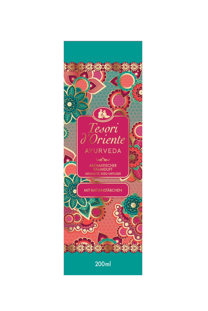 Entfliehe dem Alltag und begib dich auf eine Reise in die harmonische Welt des Ayurveda! Die Duftstäbchen Ayurveda von Tesori d’Oriente verwandeln dein Zuhause in einen Ort der Ruhe und Balance. Inspiriert von der alten indischen Lebensphilosophie fördern sie mit ihrem warmen, sinnlichen Aroma das innere Gleichgewicht und schaffen eine Atmosphäre der Entspannung und Gelassenheit. Der ätherische Duft vereint spritzige Noten von süßer Orange, Amla und Zitrone mit der tiefen, umhüllenden Wärme von Patchouli und Zedernholz. Diese harmonische Komposition wirkt ausgleichend und wohltuend auf Körper und Geist – perfekt für Momente der Entspannung. Dank der feinen Rattanstäbchen verteilt sich der Duft gleichmäßig und dauerhaft im Raum und verleiht jedem Ambiente eine sanfte, meditative Aura. Ob im Wohnzimmer, Schlafzimmer oder im Bad – mit einer Duftdauer von bis zu 8 Wochen begleitet dich der Ayurveda-Diffuser langanhaltend auf deiner Reise zu mehr Harmonie und Wohlbefinden.