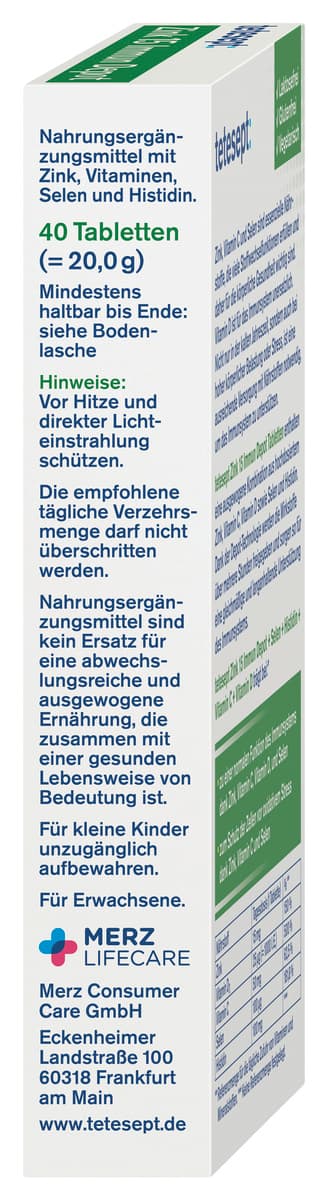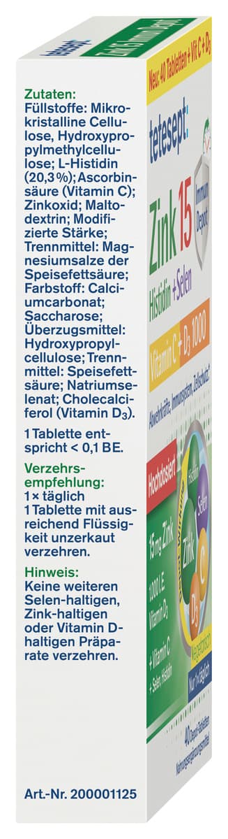 - Mit hochdosiertem Zink, Vitamin C, Vitamin D sowie Selen und Histidin.