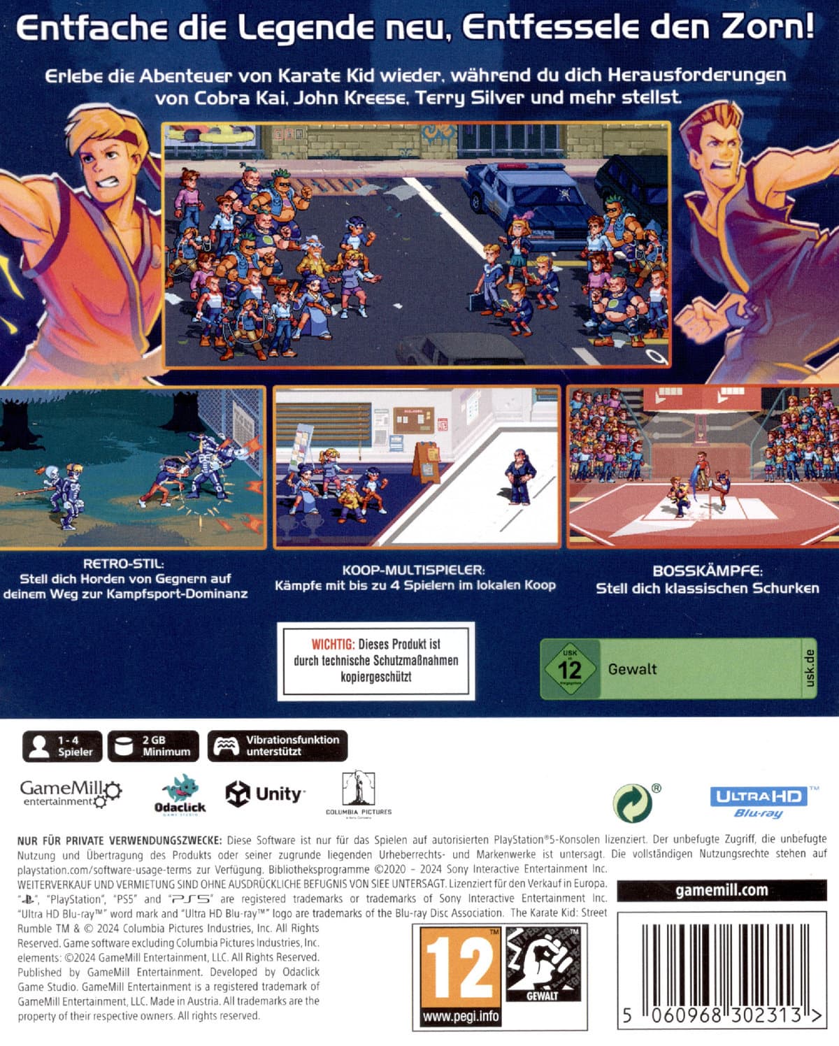 Mit drei Kultschauplätzen aus den ersten drei klassischen Karate Kid-Filmen aus den 80ern als Kulisse verlässt du das Dojo und betrittst die Straßen von West Valley und Okinawa, während du in diesem Side-Scroller- und Beat-'em-up-Abenteuer mit Pixelgrafik gegen Wellen von Gegnern kämpfst.