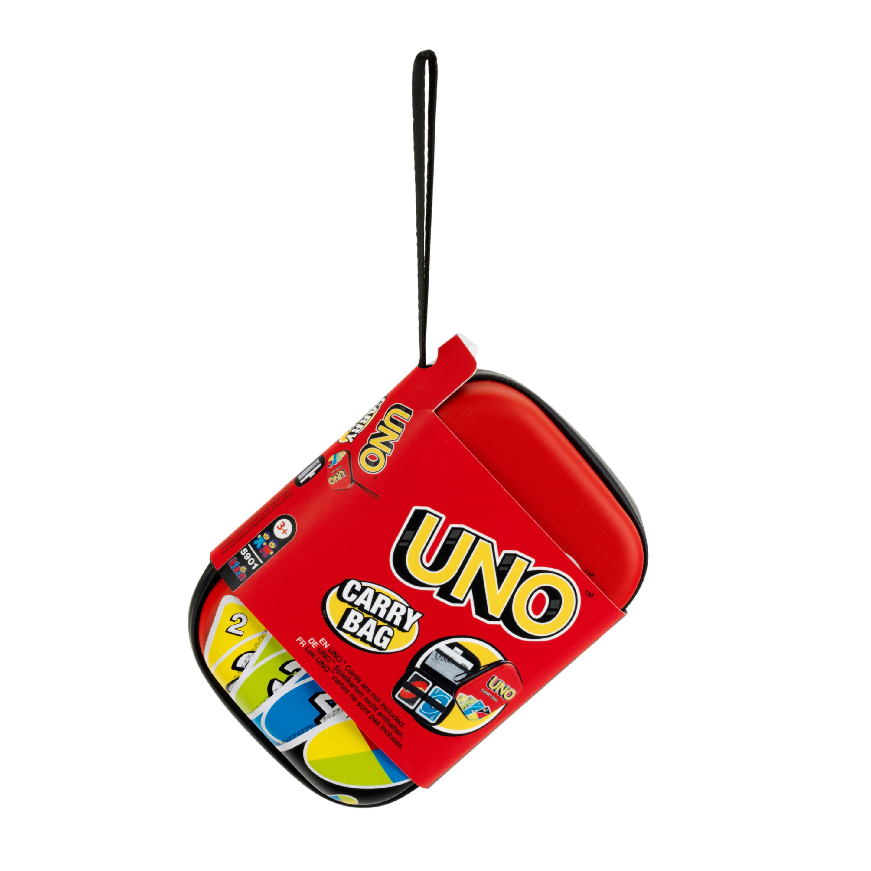 Wer UNO liebt, liebt auch diese Tasche. Denn sie bietet genug Platz für die geliebten Karten sowie die Spieleanleitung. Einfach die Spielkarten in zwei Stapeln zusammenlegen, unter die Gummibänder schieben, Spielanleitung im Netzfach verstauen und schon kann es losgehen. Und zwar überallhin – ins nächste Kinderzimmer, auf den Campingplatz, in den Urlaub – dahin, wo Spiel, Spaß und Spannung gewünscht wird. In der Tasche sind die beliebten Karten gut aufgehoben und vor Wasser, Sand und Staub geschützt und somit für jeden lustigen UNO-Einsatz bereit, der Spaß und Freude garantiert.• Die praktische Tasche ist ideal, um UNO-Spielkarten sicher aufzubewahren und immer dabei zu haben• Die Carrybag hat auf der einen Seite ein Fach für die Spielanleitung und auf der anderen zwei Gummibänder, um die Spielkartenstapel sicher zu verwahren• Die bunte Kunststoff-Box ist leicht, robust und abwaschbar• Kinder lieben das spaßige UNO-Kartenspiel und lernen mit der hübschen Tragetasche auf die Spielkarten zu achten, sie in Ordnung zu halten und schulen beim Ein- und Ausräumen ihre Motorik• UNO-Karten nicht im Lieferumfang enthalten I Maße: 11 cm 3,5 cm x 15,5 cm I Geeignet für Kinder ab drei Jahren