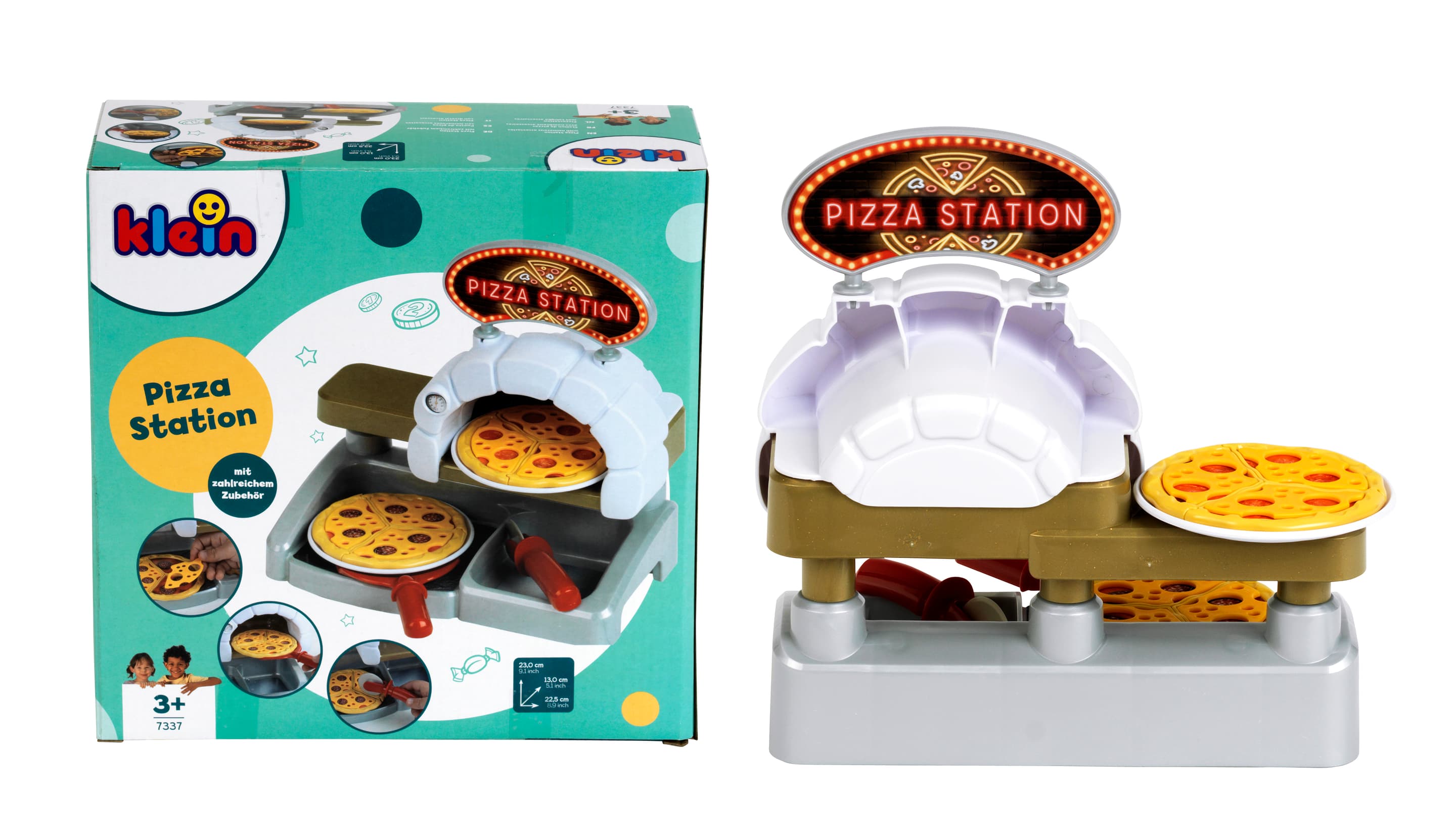 "Mit der Pizza Station von Theo Klein können Kinder zu kleinen Pizzabäckerinnen und Pizzabäckern werden! Dieses interaktive Spielset bietet alles, was für die Zubereitung und das Servieren von Pizza benötigt wird. Die Pizzen können individuell mit den sechs Käsescheiben belegt werden. Mit dem Pizzaheber lassen sich die Kreationen auf die Teller servieren, während das Pizzarad für das Schneiden in Stücke sorgt - genau wie bei den Profis! So entsteht ein realistisches und kreatives Spielerlebnis, das Fantasie und Feinmotorik fördert.