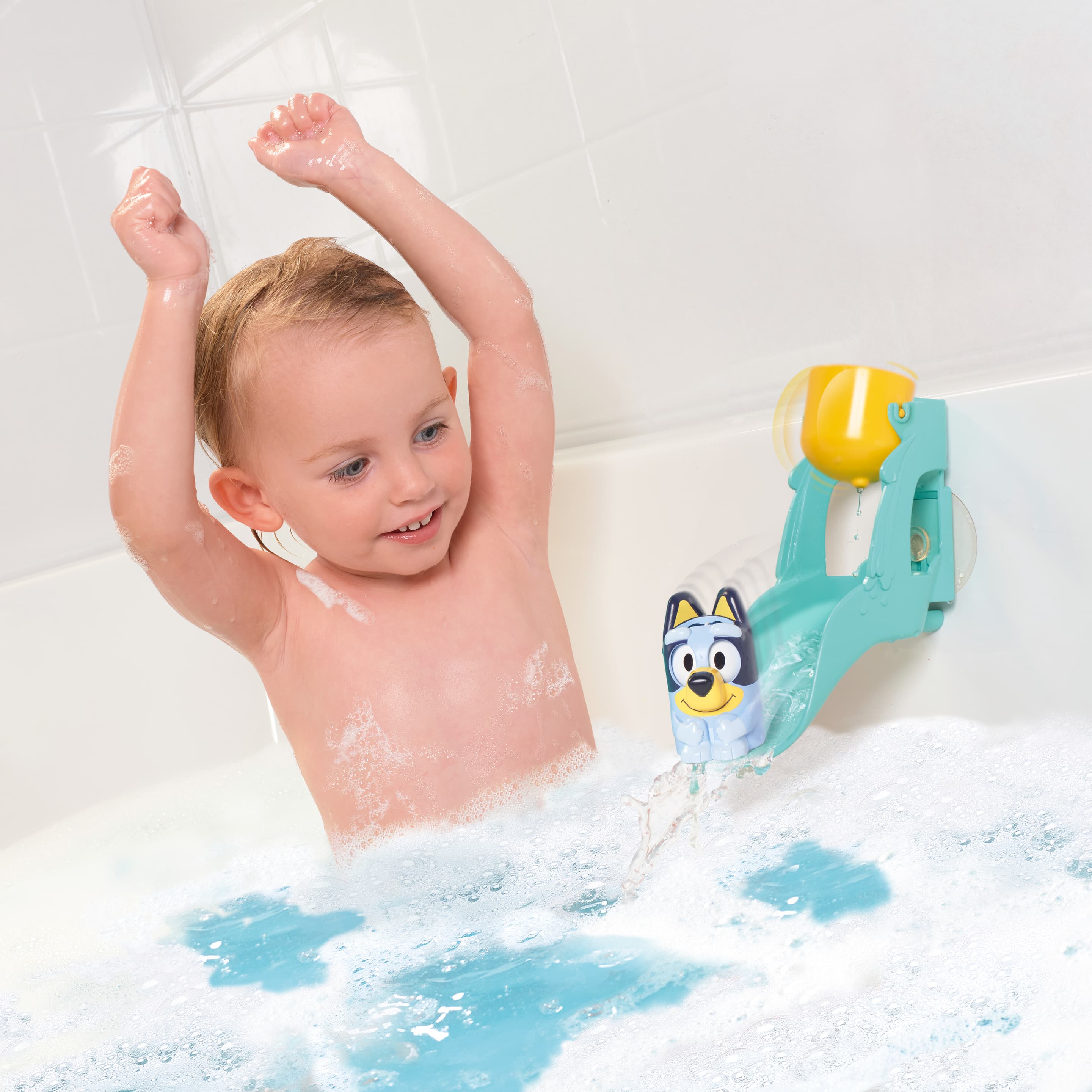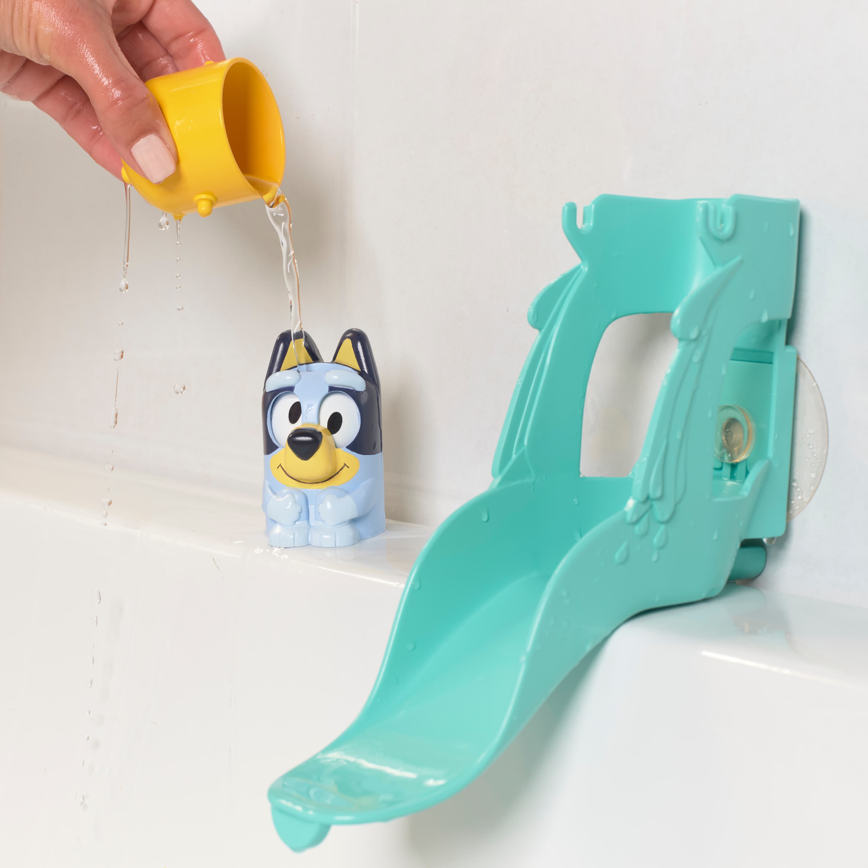Mit Blueys Wasserrutsche wird das Baden noch spannender! Kleinkinder werden es lieben, Bluey dabei zuzusehen, wie sie die Rutsche hinunterrutscht und mit einem großen Platschen ins Bad springt. Einfach den gelben Eimer abnehmen, füllen, wieder anbringen und schon ist sie bereit für ihre nächste aufregende Fahrt. Gießen Sie Wasser über Bluey, um zu sehen, wie sich ihre lustigen Augen vor Aufregung drehen. Ob sie nun die Wasserrutsche hinunter saust oder ihre verspielten Gesichtsausdrücke zeigt, dieses Bluey-Badespielzeug verwandelt die Badezeit in ein unvergessliches Abenteuer für Kleinkinder ab 18 Monaten.