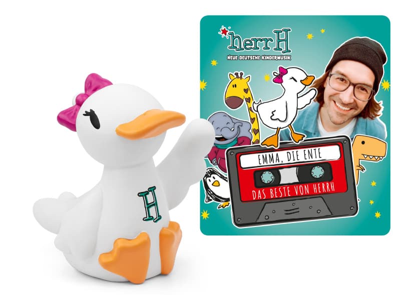 Wenn sich Kinderzimmer in XXL-Bühnen verwandeln, Kuscheltiere stage-diven und Mama und Papa live dabei sind, wenn getanzt, gesungen und gefeiert wird, dann kann nur einer am Werk sein: herrH! Er liefert den ultimativen Familiensoundtrack und sieht die Welt nicht nur durch Kinderaugen, sondern hört sie auch durch Kinderohren– womit wir auch schon bei seinem Geheimrezept wären. herrH steht für Neue Deutsche Kindermusik. Für tanzbare Beats, die auf Ohrwürmer zum Mitsingen treffen und die Kleinen jede Menge lernen und die Großen schmunzeln lassen. Seit 2015 gehört der Musiker und studierte Grundschulpädagoge zur„KiKA TanzAlarm“- und„KiKA SingAlarm“-Familie und weiß vor allem eines:„Musik ist für die kindliche Entwicklung elementar. Sie ist so wichtig, wie umarmt zu werden und ist ein echter Emotions-Booster– vor allem für die positiven Energien und Gefühle der Kleinen“. Und genau da setzt herrH‘s künstlerisches Schaffen an. Indem er RAFFI, DIE GIRAFFE, EMMA, DIE ENTE und Co. lebendig werden lässt und seine Songs mit einer ganz besonderen Portion gute Laune und positiven Gefühlen würzt, setzt er nicht nur bei den Kleinen, sondern auch bei den Großen Fröhlichkeit, Kreativität und die Lust zu tanzen frei. Kurzum: herrH verpasst der Welt der Kinder mitreißende Songs, die happy machen. Denn der junge Familienvater weiß:„Was gute Energie hat, entsteht auch aus guter Energie.“ Und genau diese Energie findet ihr in den 21 Songs seines ersten eigenen TONIES„EMMA, DIE ENTE– DAS BESTE VON HERRH“.