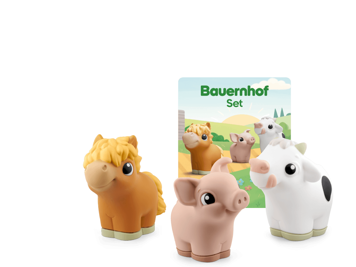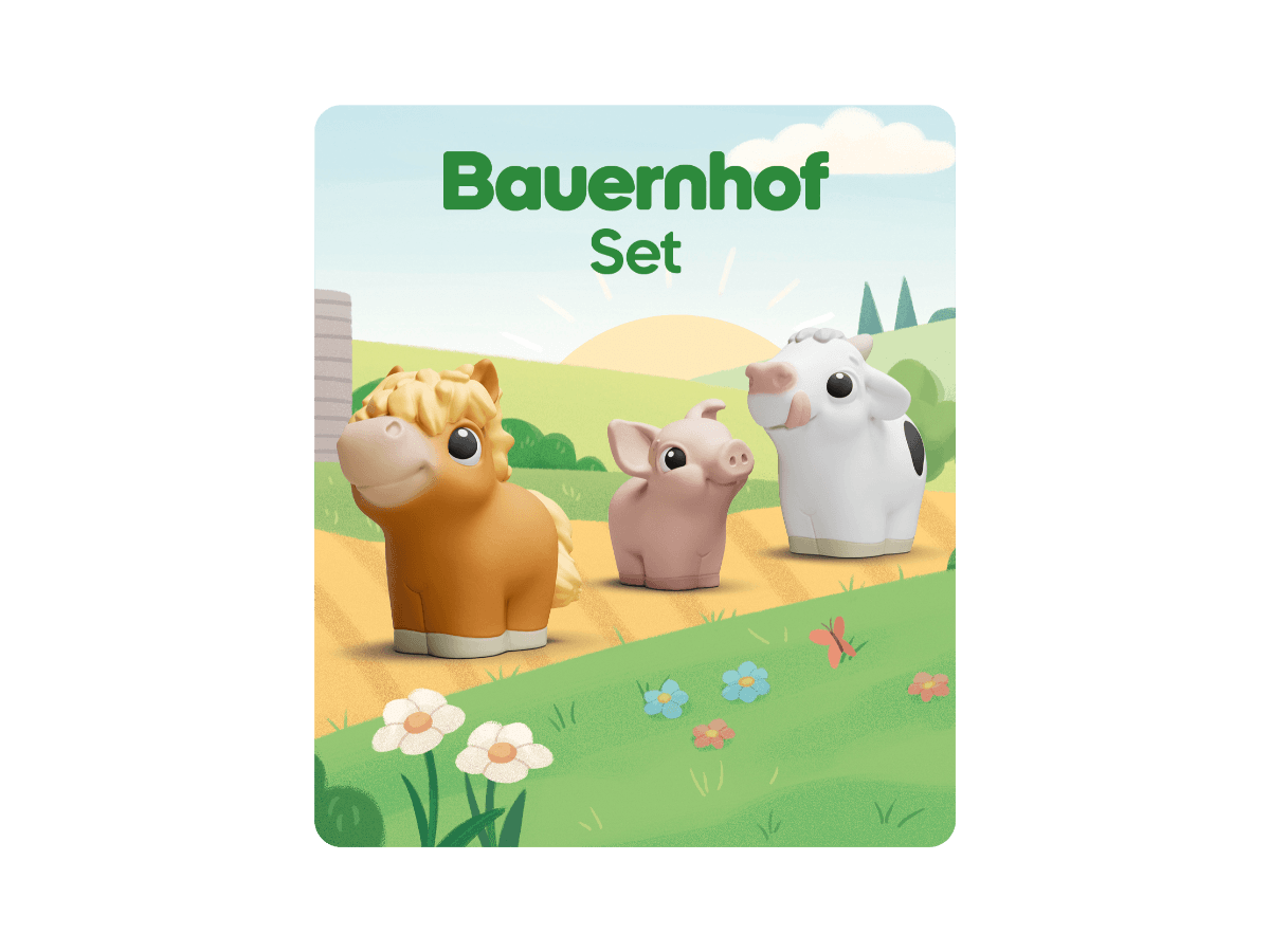 Drüüücken, lauschen und lernen mit My First Tonies! Entdecke die Welt der Bauernhoftiere! Welches Geräusch macht die Kuh? Und wie macht das Schwein? Und wie macht das Pferd? Lerne deine ersten Bauernhof-Tiere spielerisch kennen. In kurzen, altersgerecht erzählten Geschichten erfahren die Allerkleinsten alles über ihre ersten Bauernhof-Tiere, üben ihr Hörverstehen und ihre Sprachfähigkeiten und lernen ganz nebenbei neue Wörter. Ein Klangteppich mit echten Tiergeräuschen und Musik begleitet die kleinen Bauernhof-Fans beim offenen Spiel. Auf jedem Tonie lädt ein original tonies Tierlied mit eingängigen Melodien zum Mitsingen und Mitmachen ein. Gelesen und gesungen von Kindern und Erwachsenen! Mit echten Tiergeräuschen!