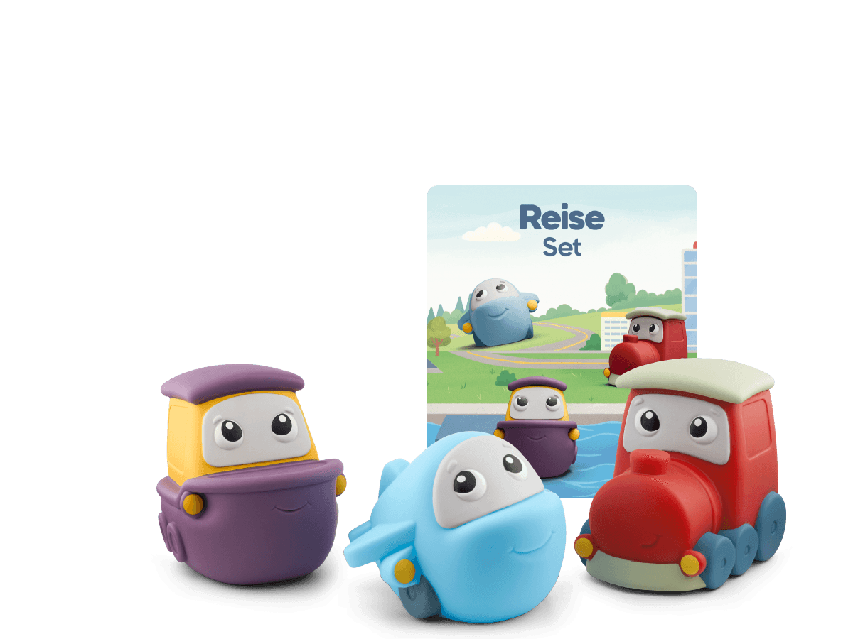 Drüüücken, lauschen und lernen mit My First Tonies! Entdecke die Welt der Fahrzeuge! Flieg hoch hinaus mit dem Flugzeug, pflüg durch die Wellen mit dem Schiff oder geh mit dem Zug auf große Reise! Kurze, liebevoll und altersgerecht erzählte Geschichten vermitteln erstes Wissen über Flugzeug, Schiff und Zug und fördern die Sprachentwicklung und das Hörverständnis kleiner Weltenbummler. Auf jedem Tonie lädt ein original tonies Fahrzeug-Lied mit eingängigen Melodien zum Mitsingen und Mitmachen ein. Ein Klangteppich mit echten Fahrzeug-Geräuschen und Musik begleitet die kleinen Reise-Fans beim offenen Spiel. Gelesen und gesungen von Kindern und Erwachsenen! Mit echten Fahrzeug-Geräuschen!