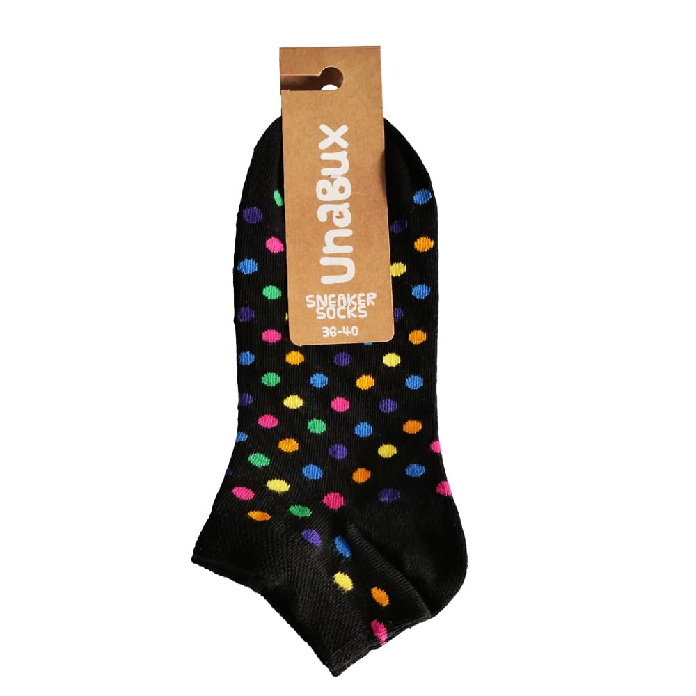 Die UnaBux Unisex Sneaker Socken mit fröhlichem Punktemuster setzen farbenfrohe Akzente im Alltag und sind eine stilvolle Ergänzung für jedes Outfit.