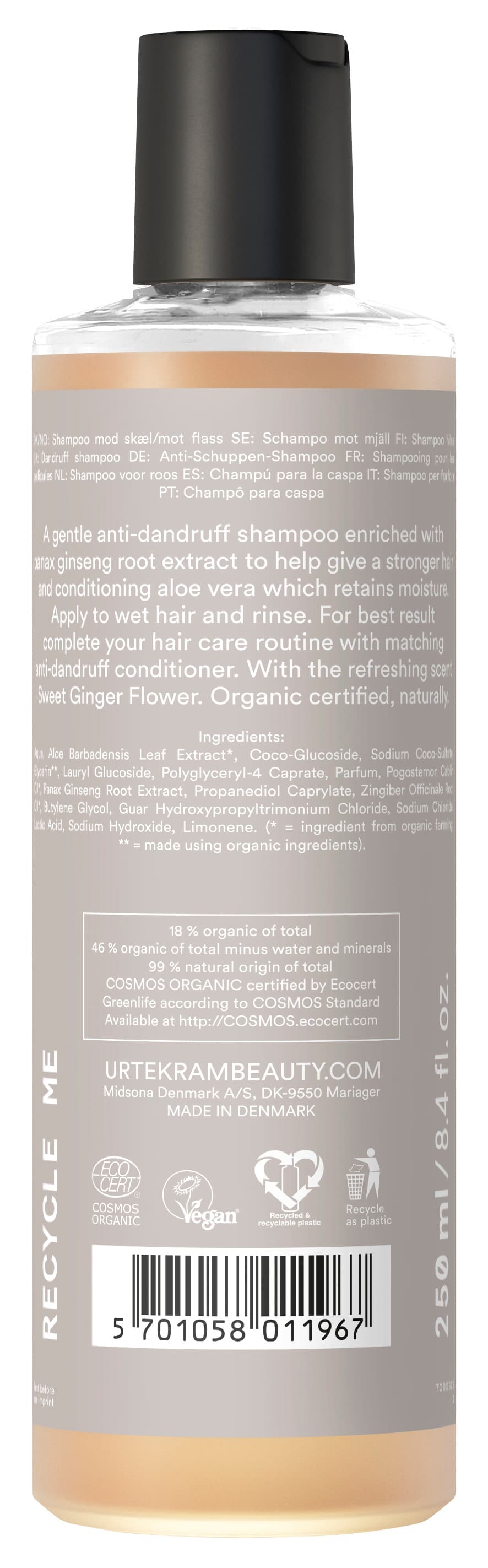 Das Anti-Dandruff Shampoo reinigt effektiv trockene bis schuppige Kopfhaut und hilft, der Schuppenbildung entgegenzuwirken. Stärkendes Gingsengwurzelextrakt kräftigt Haar und Kopfhaut, während Bio Aloe Vera intensive Feuchtigkeit spendet. Für schuppenfreie Kopfhaut und geschmeidiges Haar umhüllt vom frischen Duft aus Ingwer, Ingwerblüte und Patchouli.– Anti-Schuppen-Shampoo– mit Gingsengwurzelextrakt und Bio Aloe Vera.– mit Inhaltsstoffen zu 99 % natürlichen Ursprungs.– 100 % vegan und tierversuchsfrei (Veganblume).– duftet nach Ingwer, Ingwerblüte und Patchouli.Entdecke weitere Pflegeprodukte der Mindful Beauty Kollektion Start Over | Sweet Ginger Flower:– Schöpfe neue Energie für einen Neuanfang mit dem anregenden.– erfrischend-spritzigen Duft aus Ingwer, kombiniert mit einer Duftkomposition aus Ingwerblüte.– Zitrusnoten und Patchouli.