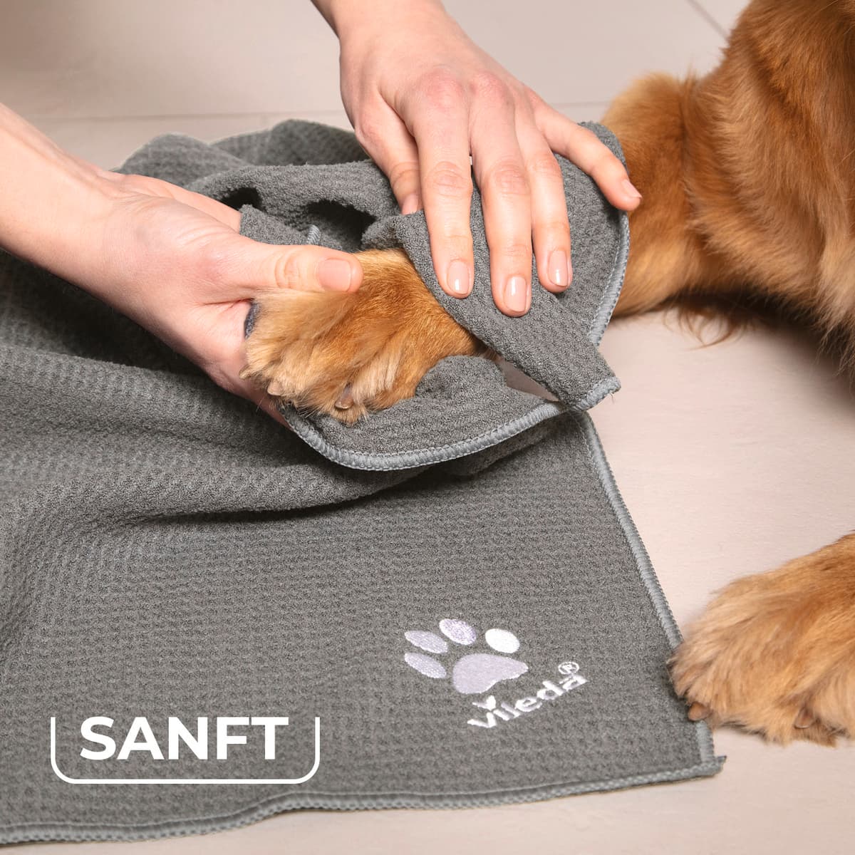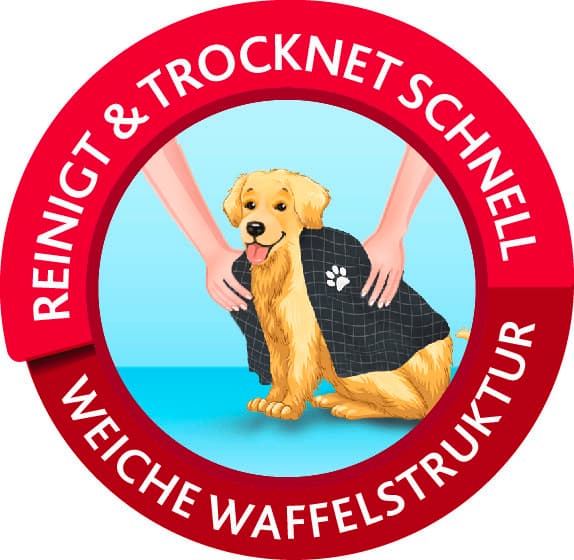 Weiches Microfasertuch zum Reinigen und Abtrocknen deines Haustiers - Dank spezieller Waffelstruktur wird der Schmutz sanft entfernt - Trocknet 6x schneller als ein Baumwolltuch* -Oekotex®-zertifiziert -Bei bis zu 60°C waschbar -Tuchmaß: 45 x 70 cm - Inhalt: 1 Stück - Zusammensetzung: 85% Polyester, 15% Polyamide
