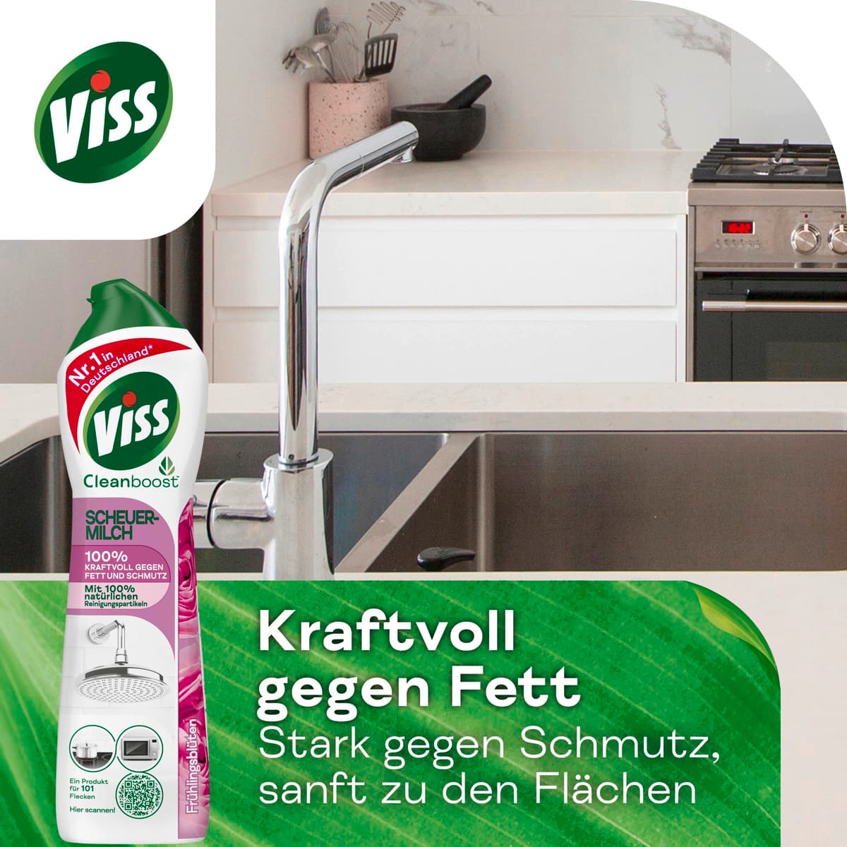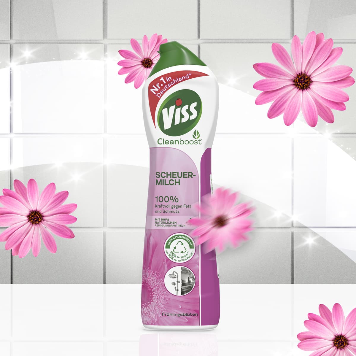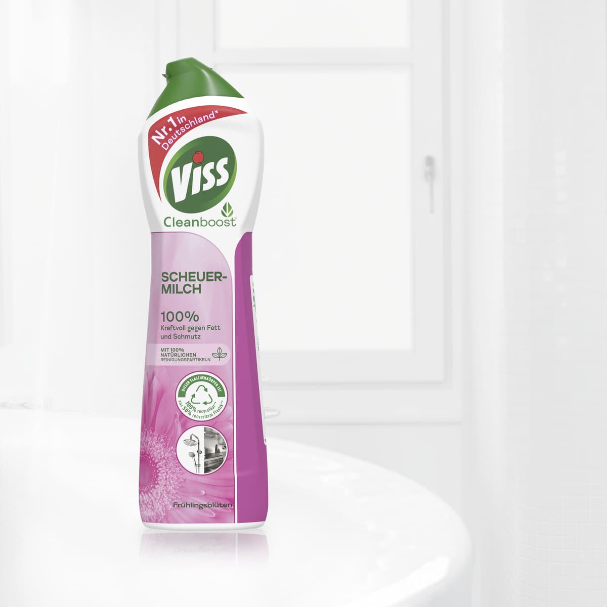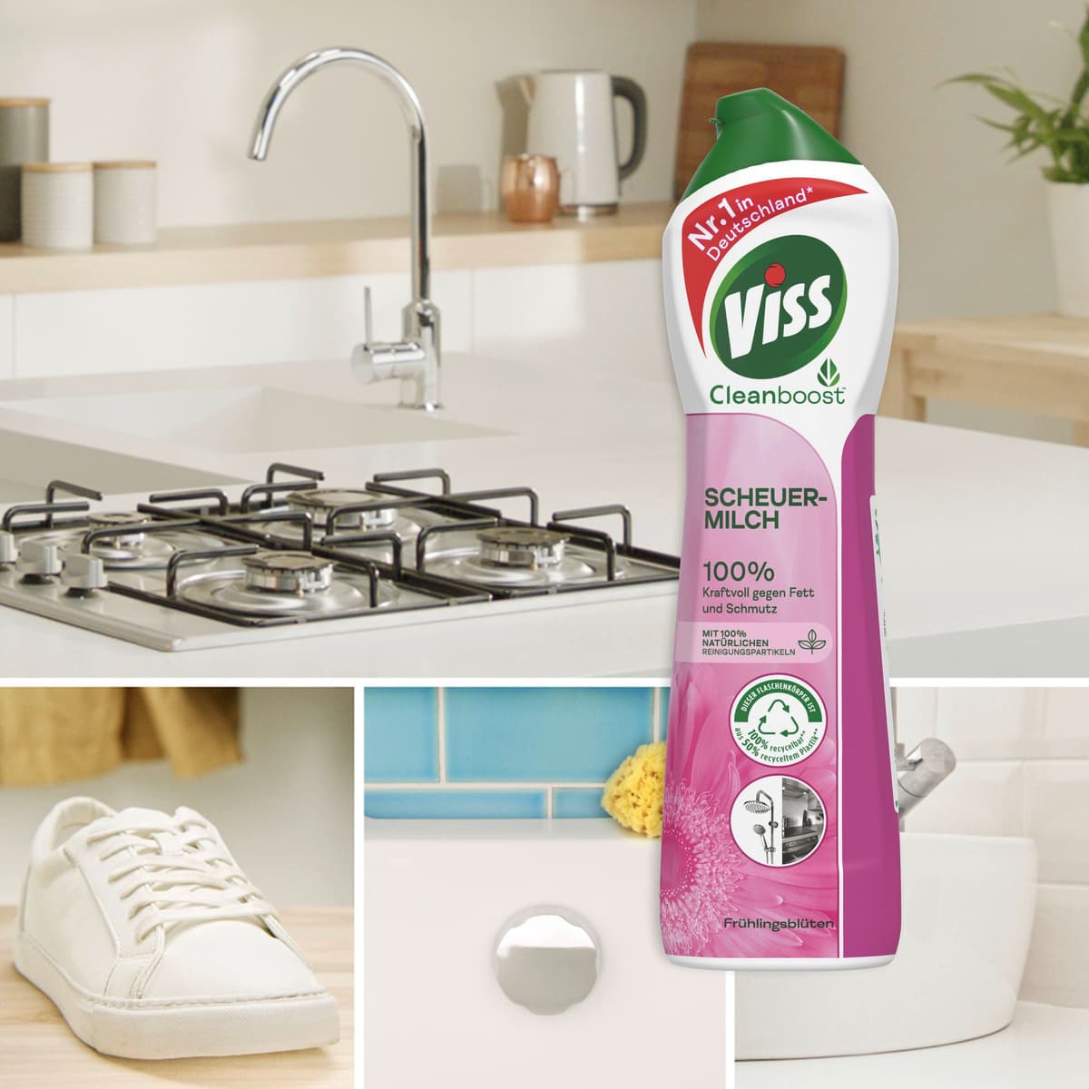 - Viss Cleanboost Scheuermilch Frühlingsblüten mit 100% natürlichen Reinigungspartikeln entfernt mühelos Fett, Schmutz, angebrannte Speisereste und sonstige Flecken