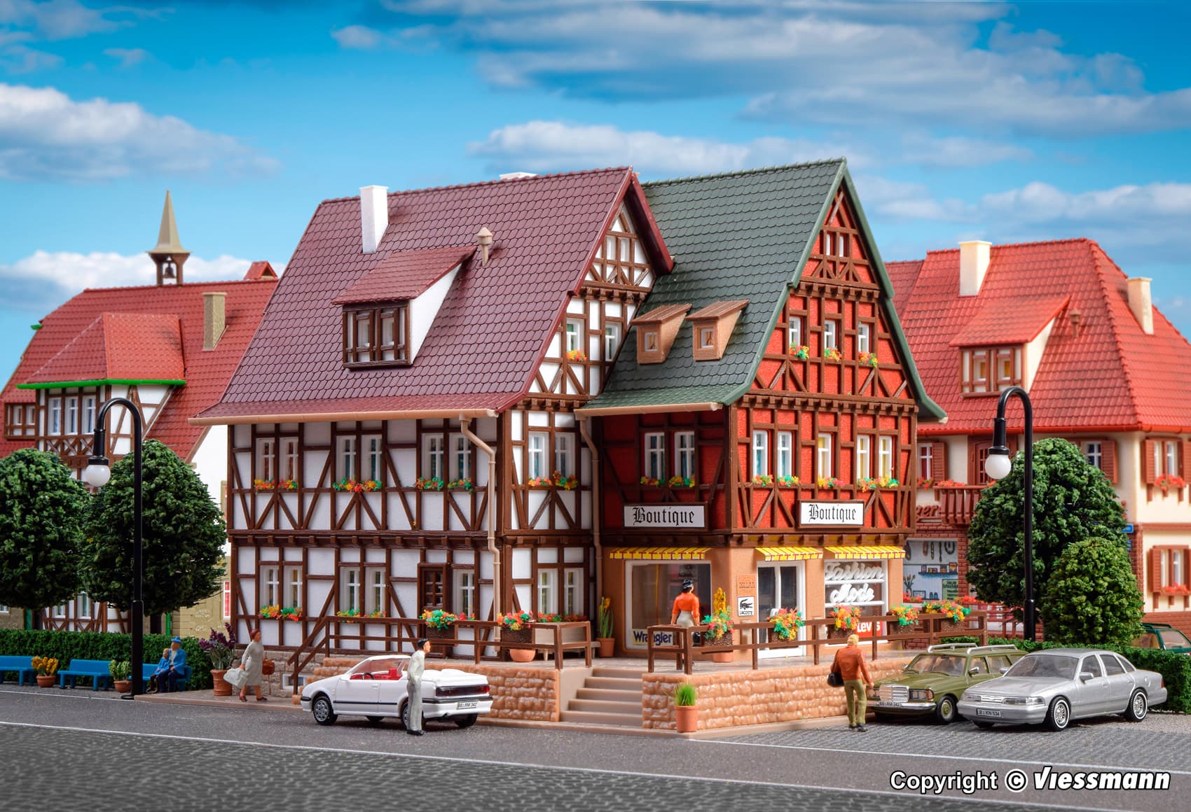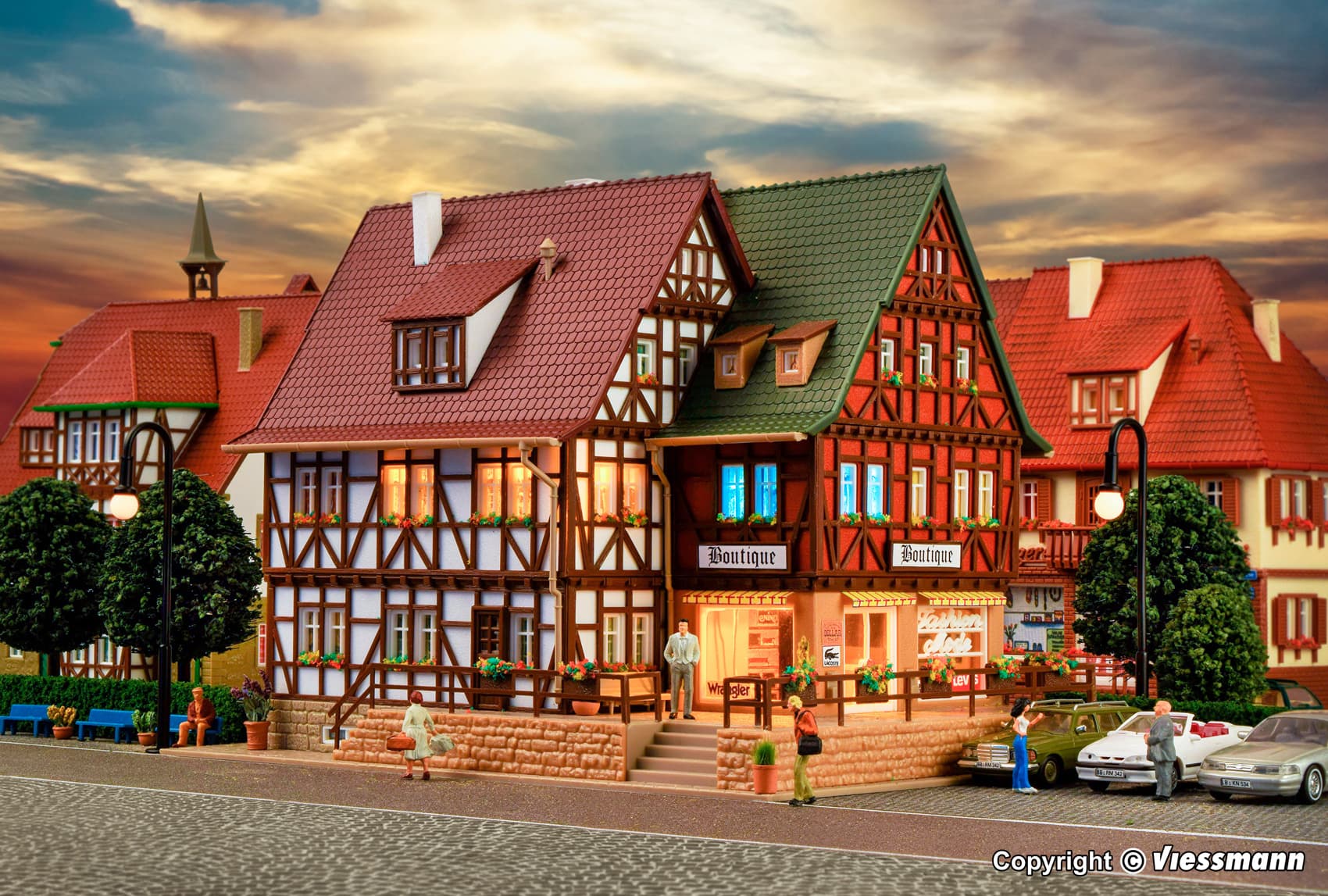 Die beiliegende LED-Beleuchtung setzt den Verkaufsraum mit seinen großen Schaufenstern und der liebevollen Ausstattung ins rechte Licht. Maße: L 19 x B 13,7 x H 13,4 cm.