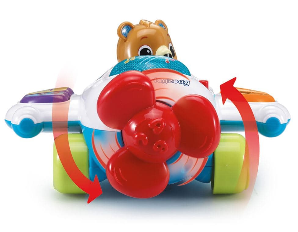 Drückt man auf die Bärenschnauze, dreht sich der Propeller und es werden Sätze abgespielt
