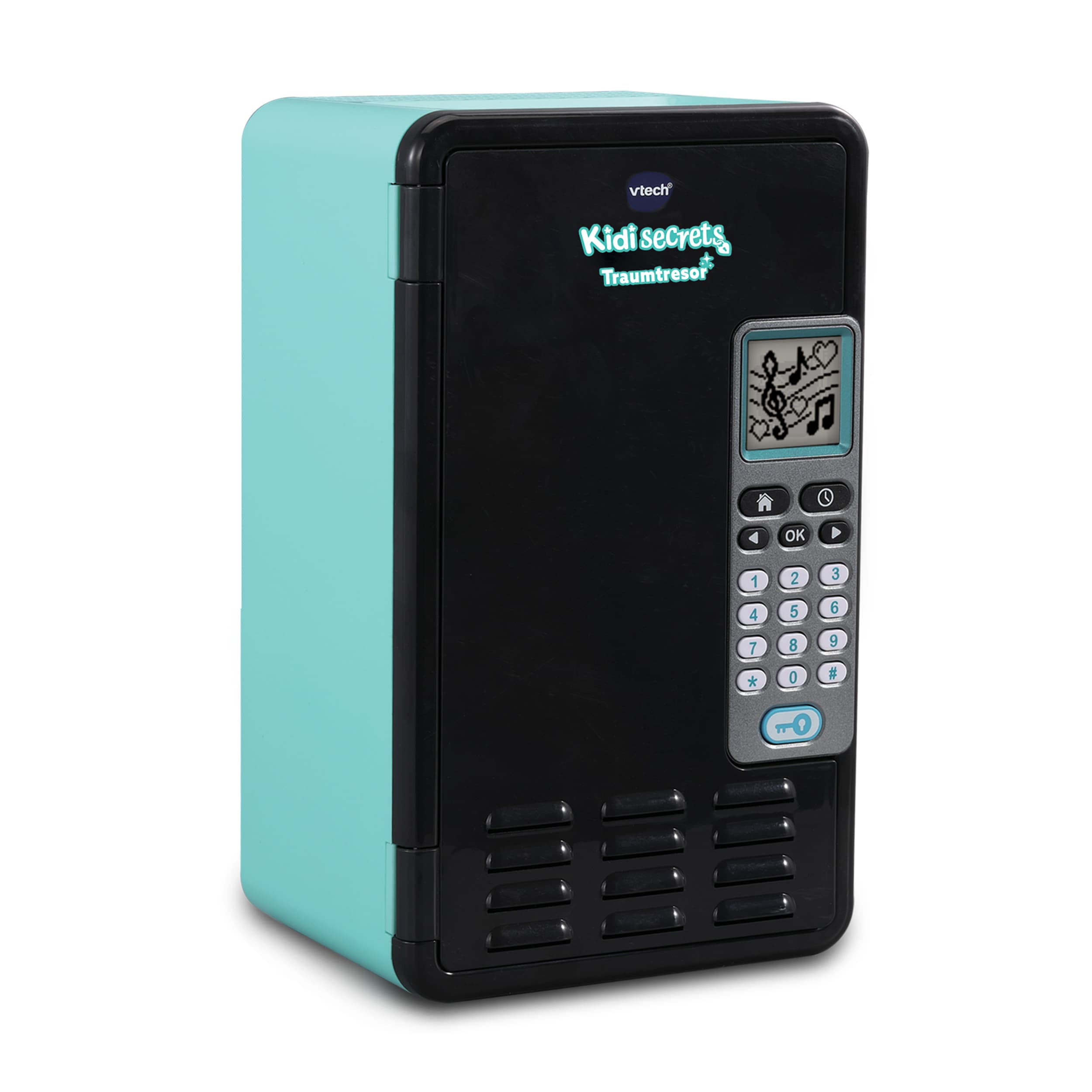 Der Traumtresor behält deine Geheimnisse ganz für sich! Mit persönlich ausgewähltem Zahlencode für die Trestortür, die sich nur durch Eingabe des richtigen Codes öffnen lässt, waren Geheimnisse noch nie so sicher verwahrt. 6 Spielmodi: 3 Zauberhafte Spiele (Lebensweisheiten hören, Glückszahl erraten und magische Karten legen), 3 Lernspiele (Geheimcode knacken, Reihenfolgen richtig merken und Schätze fangen), Musikmodus, Uhrfunktionen (Wecker mit verschiedenen Wecktönen, Timer und Stoppuhr), Zahlen-Passwort ändern und Einstellungen. 5 digitale Ziffernblätter zur Auswahl. Lerninhalte: Zahlen, Kreativität, Zeitgefühl, Mathematikkenntnisse, Gedächtnis, Gefühle & Selbstbewusstsein, Hand-Auge-Koordination und Musik. 3 Fächer für ausreichend Stauraum. Inklusive toller Aufkleber, mit denen der Traumtresor ganz einfach personalisiert werden kann. Externen Musikplayer (separat erhältlich) anschließen und die eigene Lieblingsmusik hören. LCD-Display mit Beleuchtung und Uhrzeitanzeige. 3 gesungene Lieder und 15 Melodien sind bereits vorinstalliert. Kindersicheres Batteriefach, Abschaltautomatik und Lautstärkeregler. Demobatterien sind enthalten.