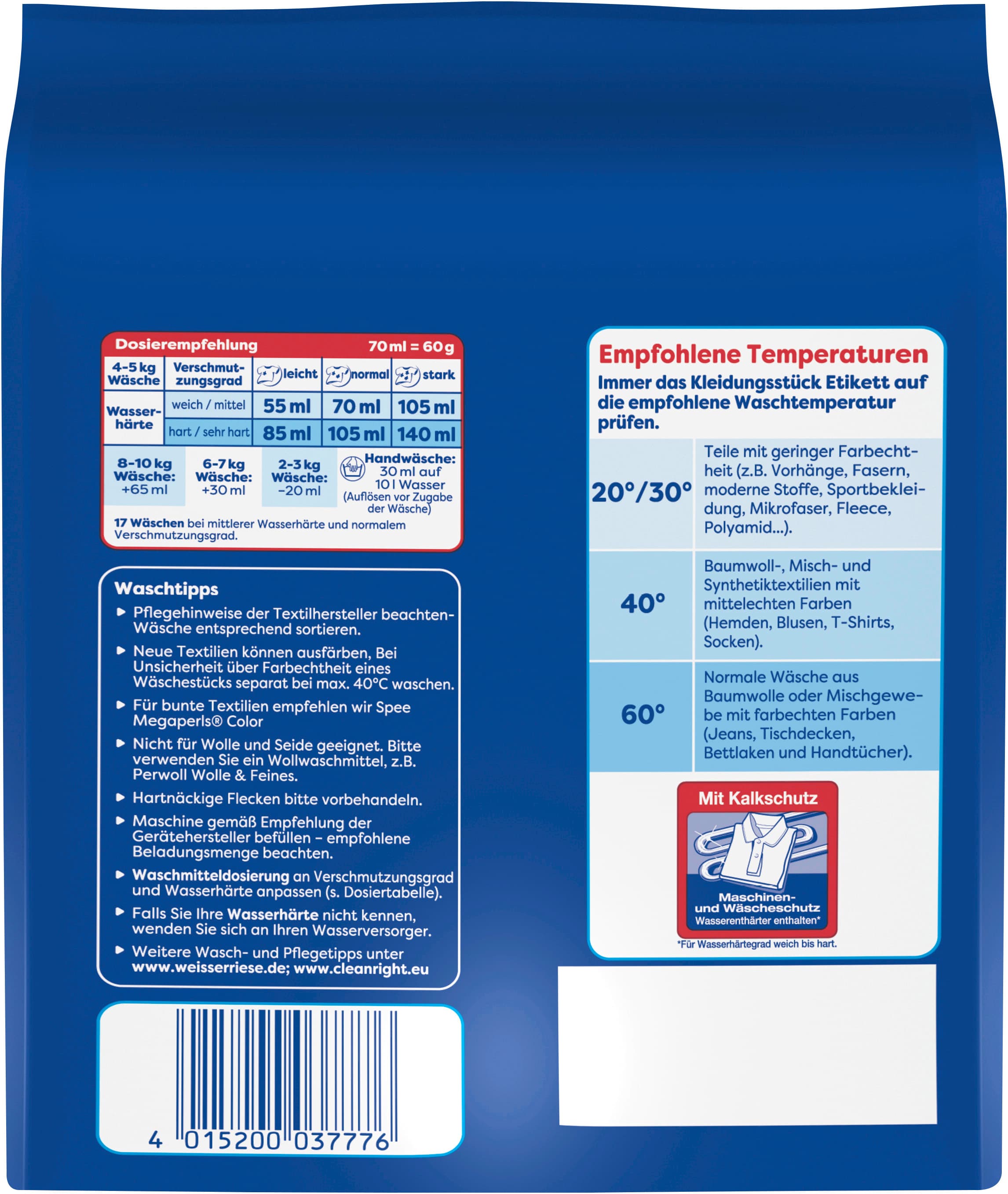 - Besonders ergiebig – Mit besonderer Ergiebigkeit und Riesen Waschkraft ist Weißer Riese Universal Megaperls das ideale Universal Waschmittel für Familien mit Kindern