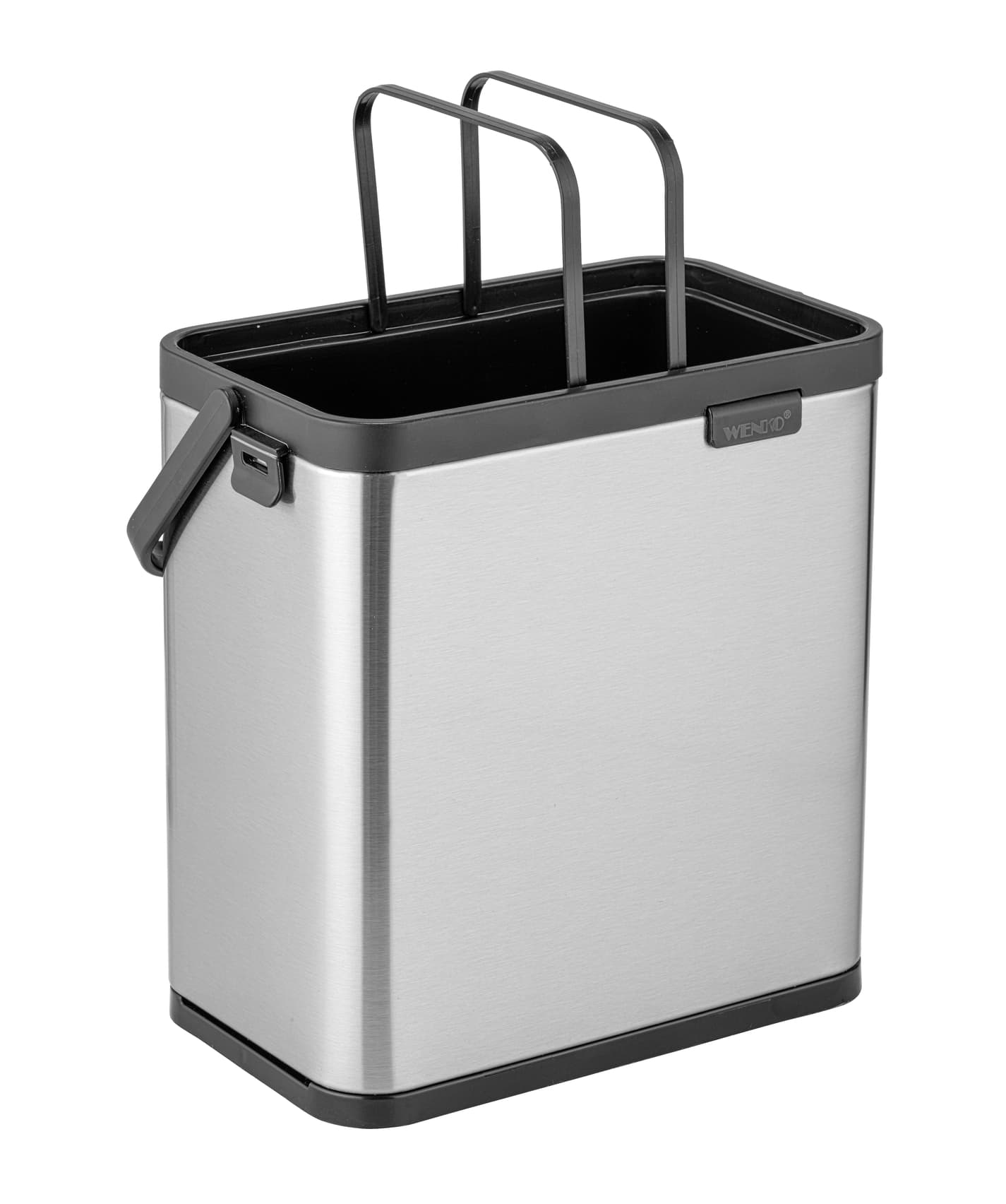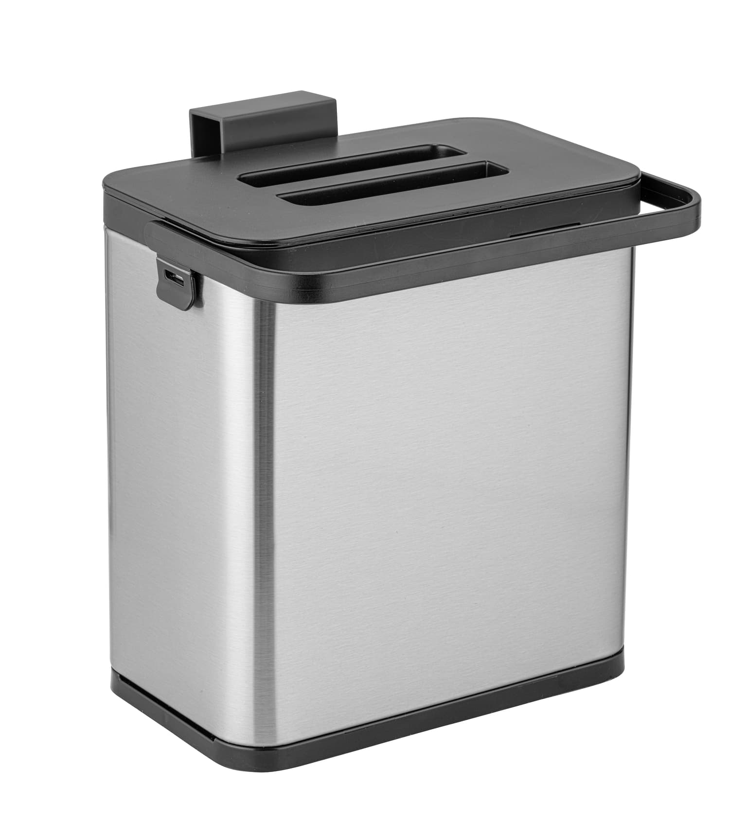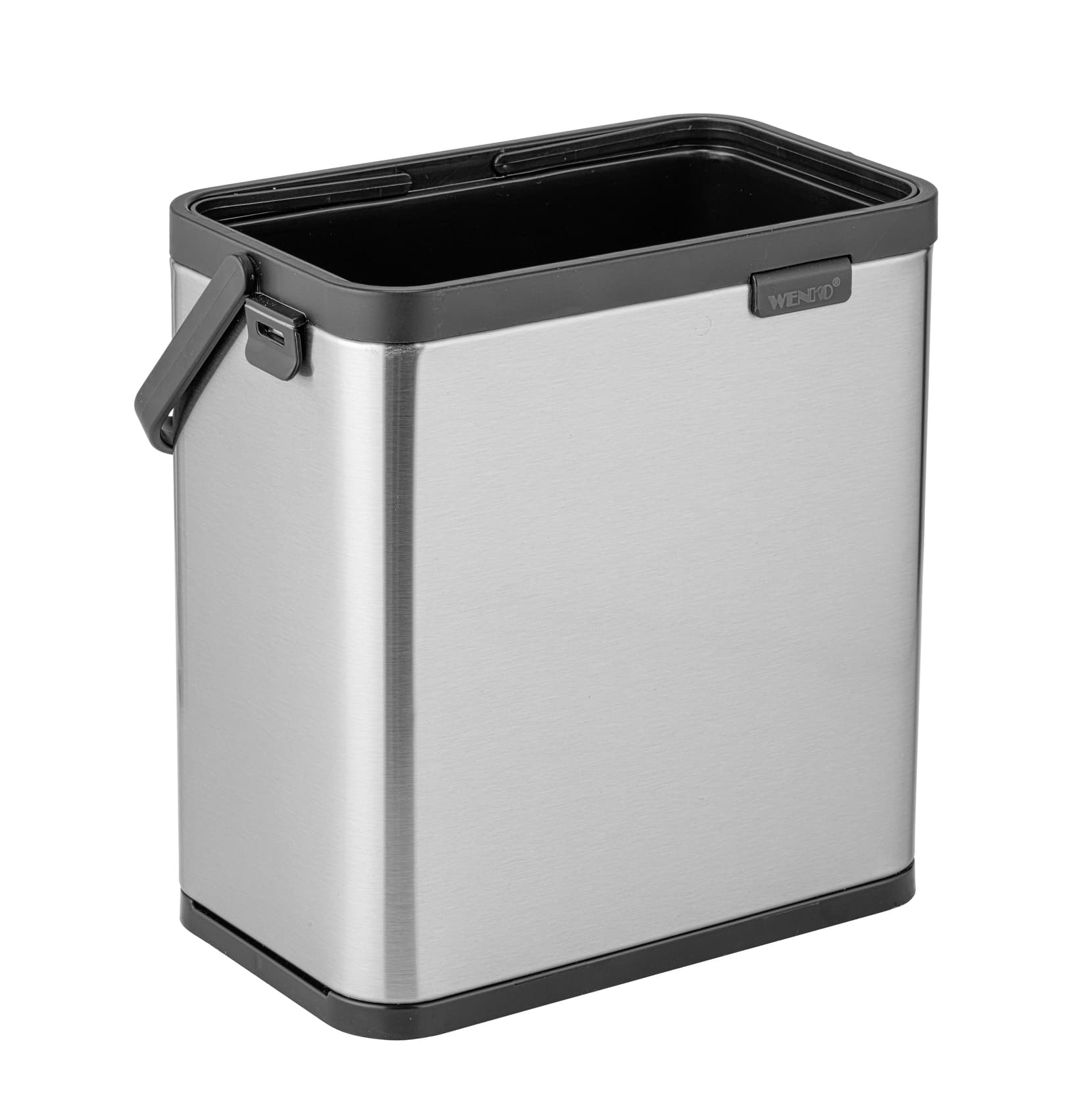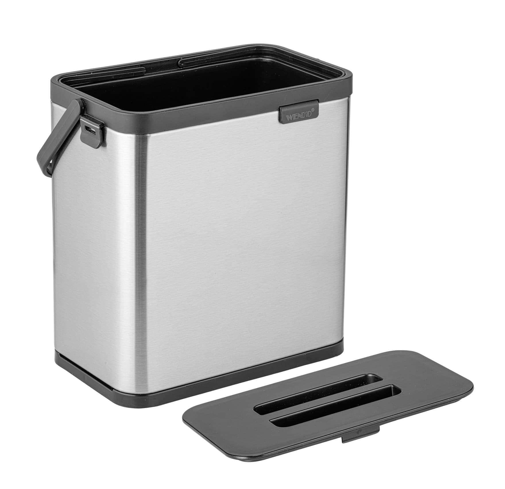 Der elegante Abfallsammler Colin von WENKO ist ein echter Blickfang in jeder Küche! Dieser kompakte Edelstahl Abfalleimer überzeugt durch sein Anti-Fingerprint-Finish, das lästige Fingerabdrücke verhindert, sowie seine Vielseitigkeit. Mit einem Fassungsvermögen von 3 Litern bietet der Abfallsammler ausreichend Platz für Küchenabfälle und sorgt gleichzeitig für ein stilvolles Ambiente in Ihrer Küche. Der praktische Abfalleimer mit Deckel ist freistehend und kann bei Bedarf auch hängend montiert werden. Dank der mitgelieferten Über-Tür- und Static-Loc®®-Befestigungsmöglichkeiten lässt sich der Abfallsammler flexibel in Ihrer Küche einsetzen. Der integrierte Griff erleichtert den Transport und die Entleerung des herausnehmbaren Innenbehälters. Dieser ist aus robustem Kunststoff gefertigt und vermeidet den direkten Kontakt des Abfalls mit dem Edelstahl – ideal, um Rost zu verhindern und die Langlebigkeit Ihres Abfalleimers zu sichern. Mit seiner mattsilbernen Optik und den schwarzen Akzenten fügt sich der stylische Edelstahl Abfalleimer nahtlos in jede Kücheneinrichtung ein. Die rutschfesten Füße sorgen für einen sicheren Stand, egal ob auf der Arbeitsplatte oder im Schrank. Ergänzen Sie Ihre Küchenausstattung mit diesem funktionalen und stilvollen Abfalleimer klein und erleben Sie Sauberkeit und Ordnung auf höchstem Niveau. Der Abfallsammler Colin ist die perfekte Lösung, um mehr Ordnung in Ihre Küche zu bringen. Entdecken Sie auch unsere weiteren praktischen Küchenhelfer, die Ihre Küchenorganisation unterstützen und den Alltag erleichtern. Investieren Sie in diesen hochwertigen Küchenabfalleimer und genießen Sie die Vorteile eines durchdachten Designs, das Funktionalität und Ästhetik vereint!