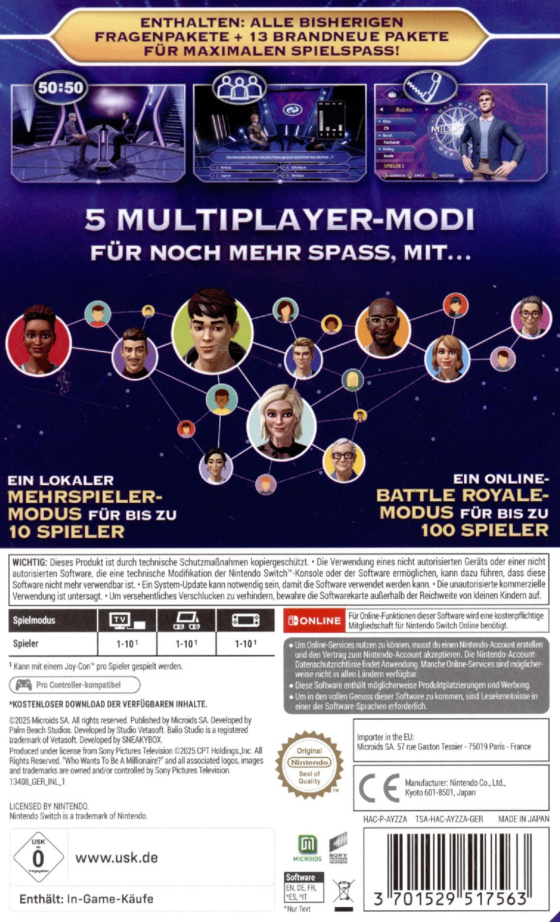 • Die Musik, das Set, die Spannung, die Joker (Telefonjoker, 50:50, Publikumsjoker) ... Hier ist alles vorhanden, um die authentische Atmosphäre der legendären Spielshow nachzubilden!