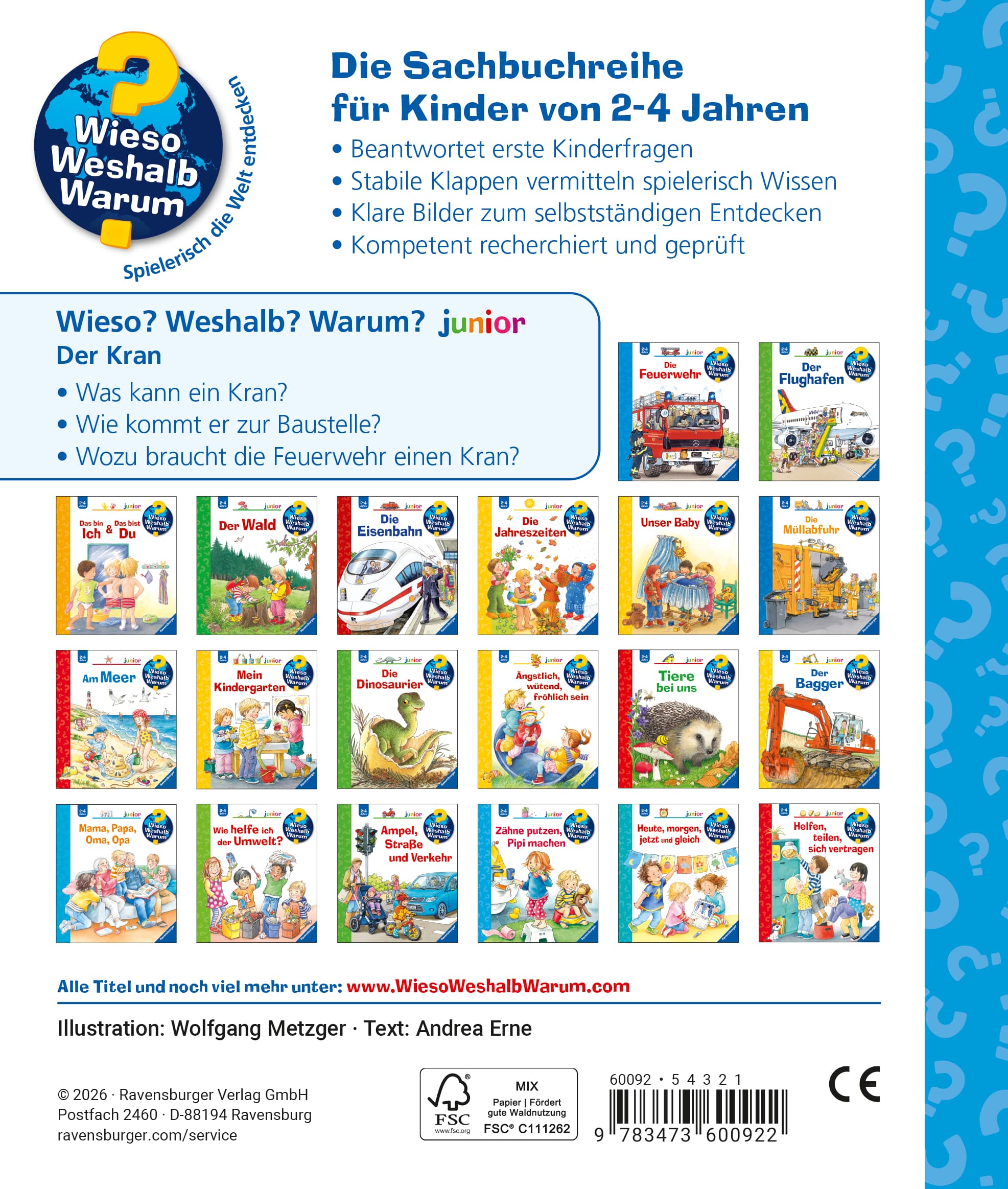 Jeden Tag entdecken Kinder etwas Neues – und haben viele Fragen. Wann kommt die Feuerwehr? Was machen die Tiere im Winter? Warum muss ich Zähne putzen? Die beliebte Sachbuchreihe Wieso? Weshalb? Warum? junior beantwortet die Fragen der Kinder auf Augenhöhe. Sie beleuchtet unterschiedlichste Themen aus ihrer Alltags- und Interessenswelt altersgerecht und mit viel Liebe zum Detail.