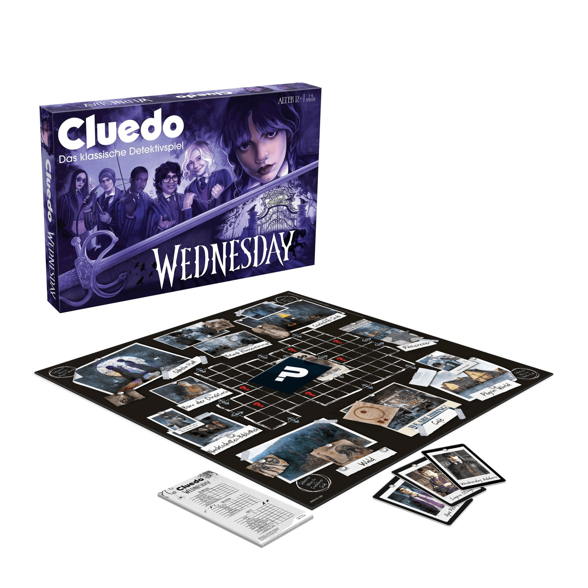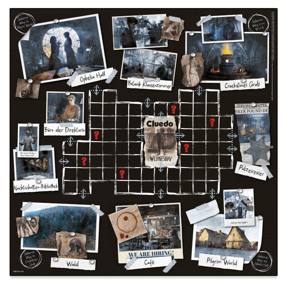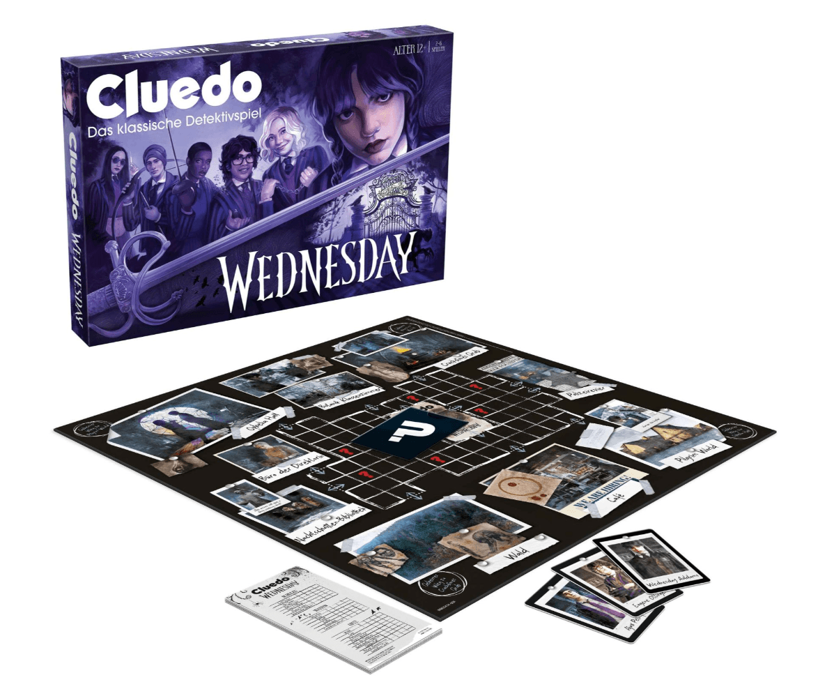 Tauche ein in die düstere Welt der Nevermore Academy mit der exklusiven Cluedo – Wednesday Edition! In dieser spannenden Variante des klassischen Detektivspiels schlüpfst du in die Rollen von Wednesday Addams, Enid Sinclair und weiteren Charakteren aus der beliebten Serie „Wednesday“. Gemeinsam mit bis zu fünf Mitspielenden begibst du dich auf die Suche nach dem gefährlichen Hyde – wer ist das nächste Opfer, wo geschah das Verbrechen und welche Waffe wurde benutzt?