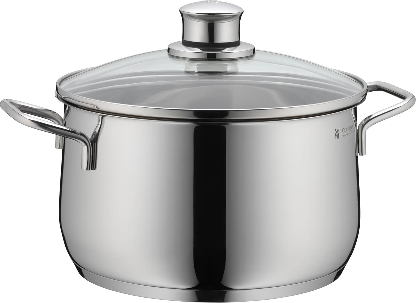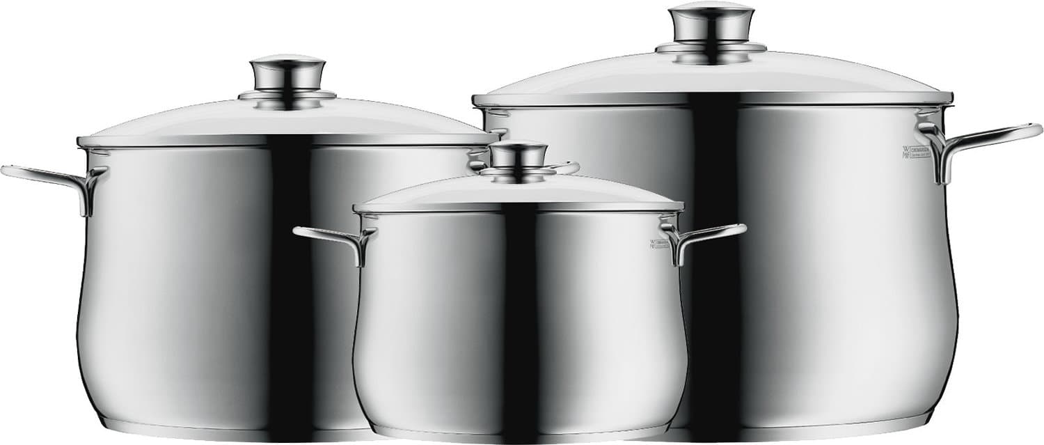 Mit dem 10-teiligen Diadem Plus Kochgeschirr-Set von WMF ziehen stilvolles Design und herausragende Funktionalität in die Küche ein. Töpfe, Pfannen und Deckel dieses umfangreichen Starter-Sets sind aus genauso elegantem wie strapazierfähigem und pflegeleichtem Cromargan®: Edelstahl Rostfrei 18/10 und hochwertigem Glas gefertigt. Ausgestattet mit dem energiesparenden TransTherm®-Allherdboden und vielen weiteren cleveren Details, lassen sie keine Wünsche offen. Dazu sind Töpfe und Deckel selbstverständlich zur mühelosen Reinigung in der Spülmaschine geeignet und dürfen gemeinsam auch bei bis zu 180°C in den Backofen.