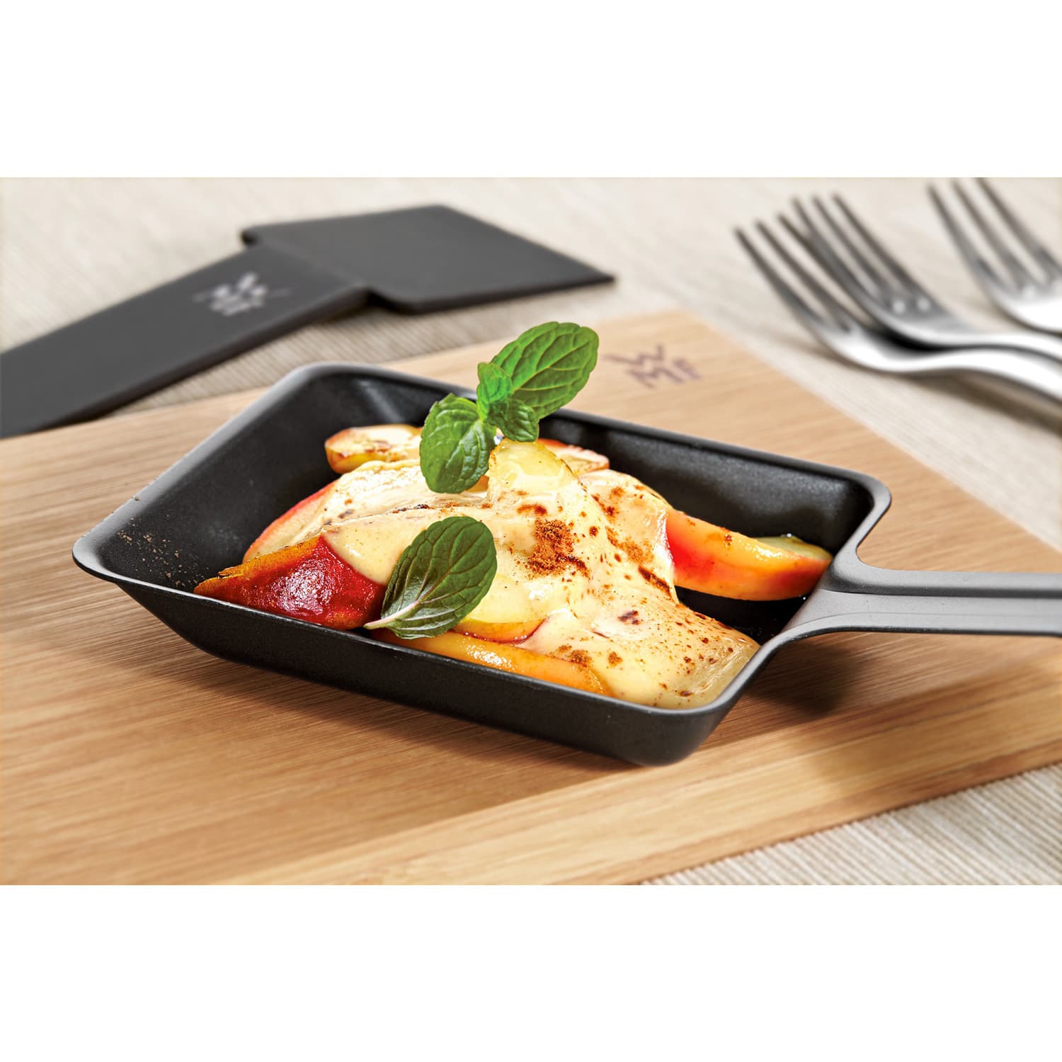 Ob Weihnachten, Silvester, Familienfeier oder ein spontanes Treffen mit Freunden. Raclette ist der perfekte Begleiter für einen geselligen Abend. Zart schmelzender Käse kombiniert mit einer bunten Vielfalt an Fleisch, Fisch und Gemüse sorgt an einem gemütlichen Raclette-Abend für feinsten Genuss. Ob deftig oder süß– hier sind für jeden Geschmack die richtigen Zutaten dabei. Kulinarische Highlights und festliche Momente gemeinsam genießen: Mit dem Lono Raclette von WMF lässt sich dank wendbarer Aluminiumgussplatte mit Antihaftbeschichtung schnell schnell ganz einfach zwischen zartem Grillen und dem Zubereiten von Crêpes wechseln. Zum Set gehören je acht spülmaschinengeeignete Pfännchen und Spatel.
