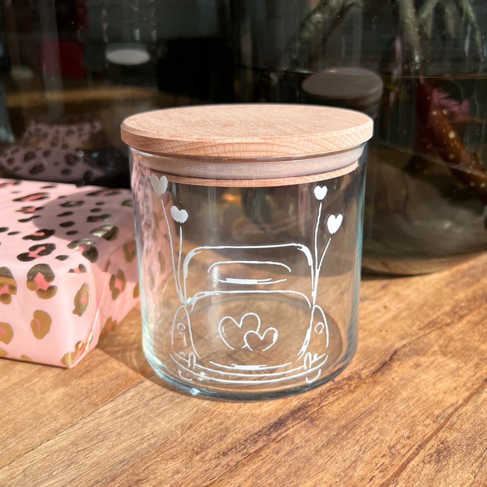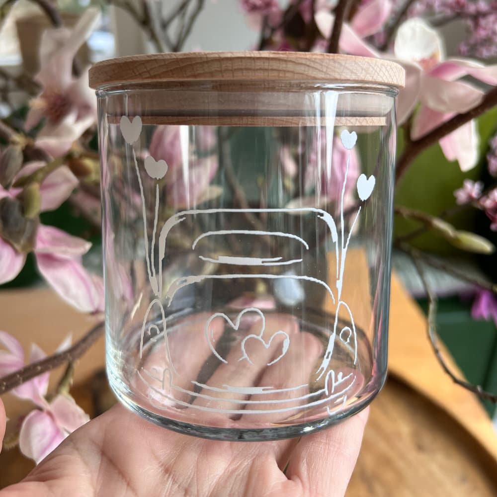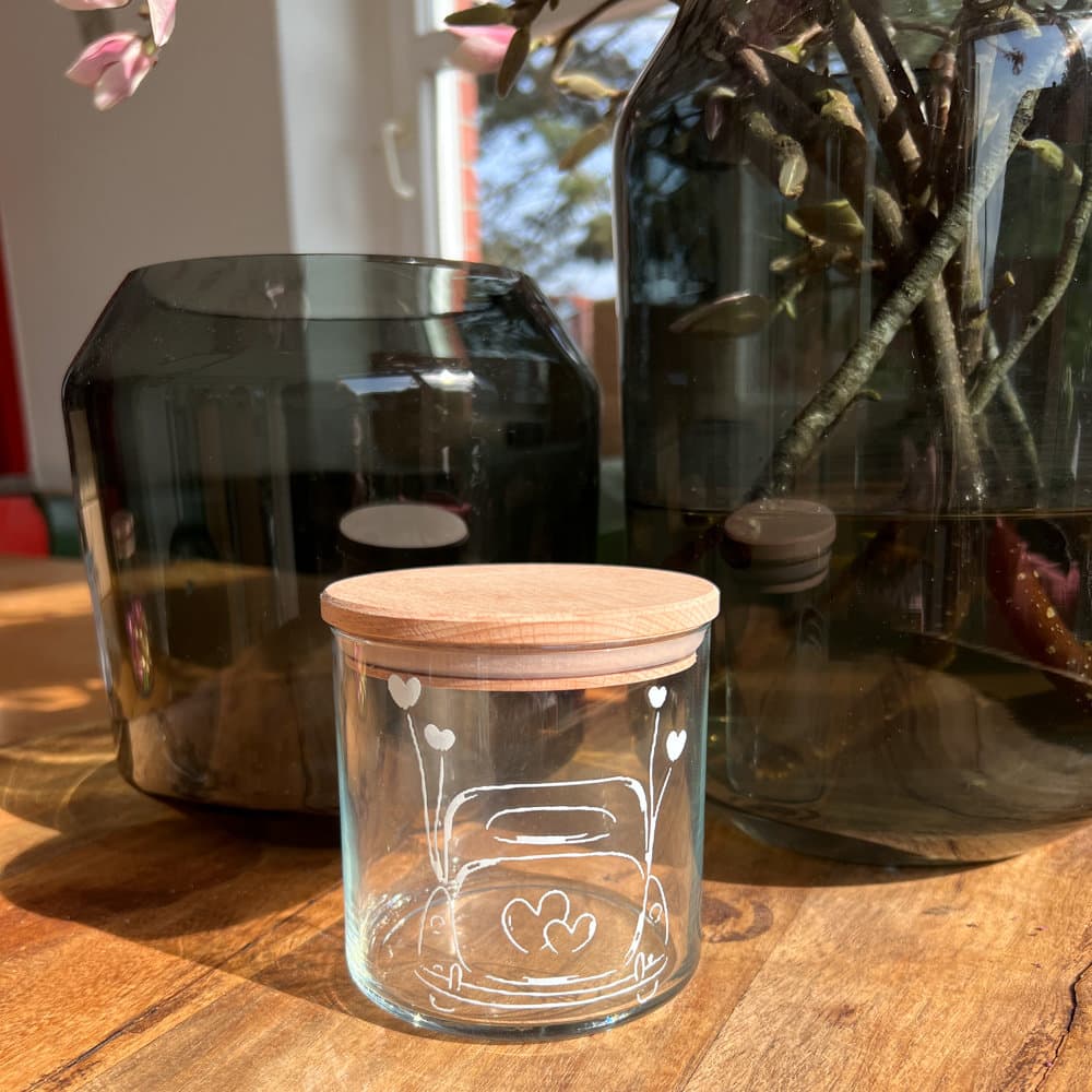 Ein kleines Glas – ein großer Moment. Unsere Glasdose Hochzeit“ist eine liebevolle Aufmerksamkeit für den schönsten Tag im Leben. Ob gefüllt mit süßen Grüßen, einem Geldgeschenk oder einer persönlichen Botschaft – sie macht aus einer kleinen Geste etwas ganz Besonderes.