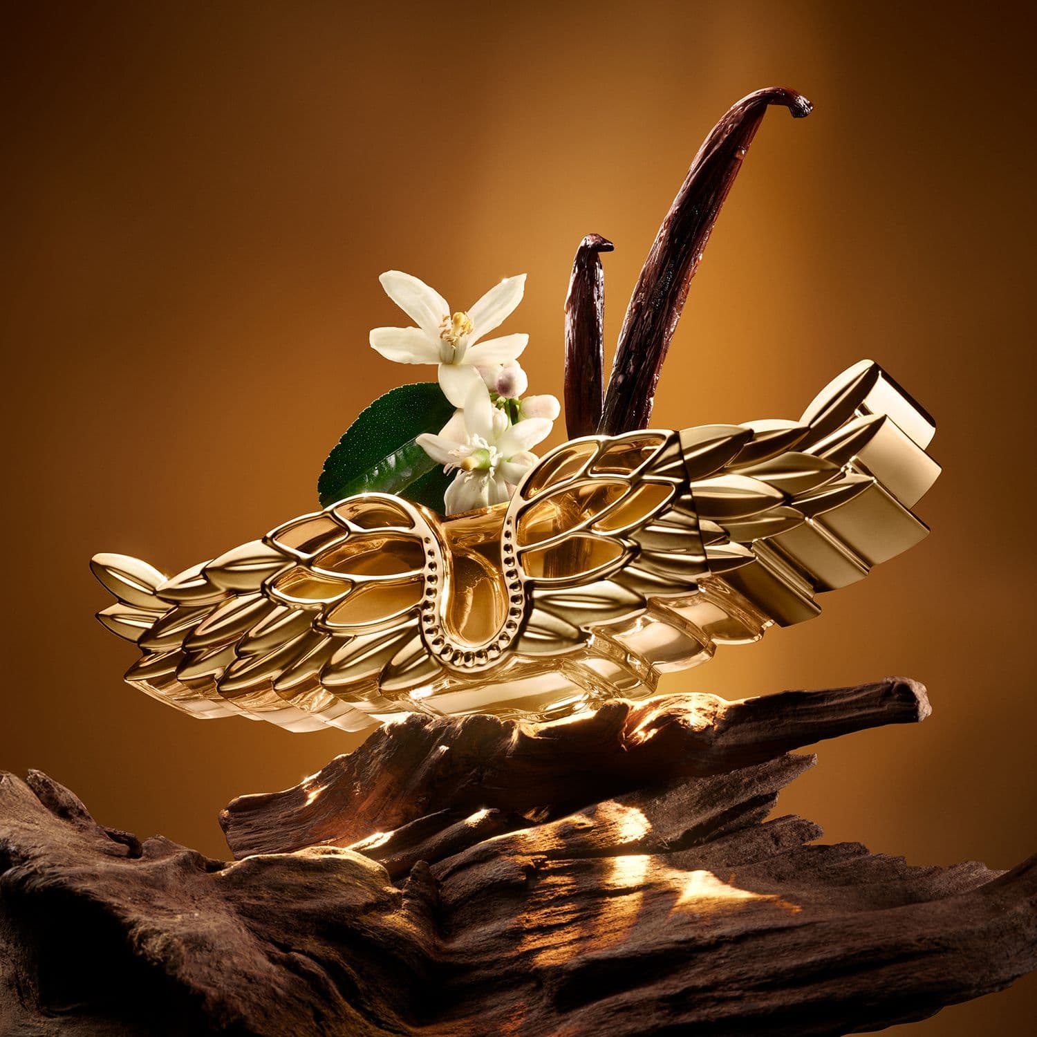 Rebellisch von innen heraus: Der ikonische Flakon in Flügelform erstrahlt in Gold und glänzt mit einem auffälligen Metallic-Finish. Nachfüllbares Fashion Accessoire und Objekt der Inspiration zugleich – dieser goldene Flakon ist mehr als ein Duft: Er ist ein Symbol der Freiheit und das ultimative Mode-Statement.