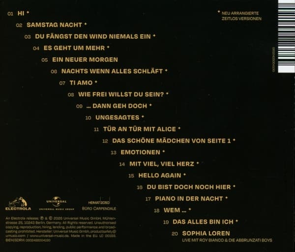 | 13 | Carpendale, Howard | Emotionen (Zeitlos Version) | 00:03:33 | |