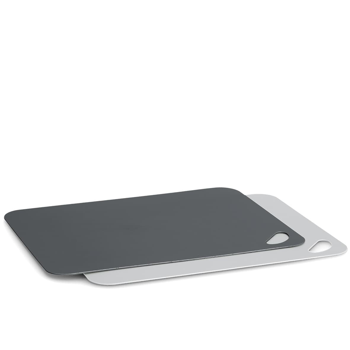 Dieses aus Kunststoff (PE) gefertigte 2-teiligen Schneidematten-Set ist schlicht und edel zugleich. Mit einer Größe von 38x29cm kann es vielseitig in der Küche eingesetzt werden. Dabei ist es lebensmittelecht und spülmaschinengeeignet. Die verschiedenfarbigen Unterlagen lassen sich ganz einfach an einen Haken hängen - dank einer praktischen Aussparung an einer Ecke.