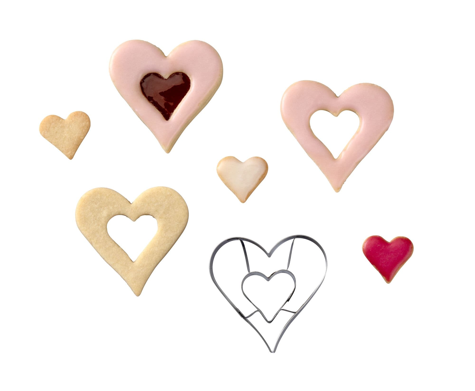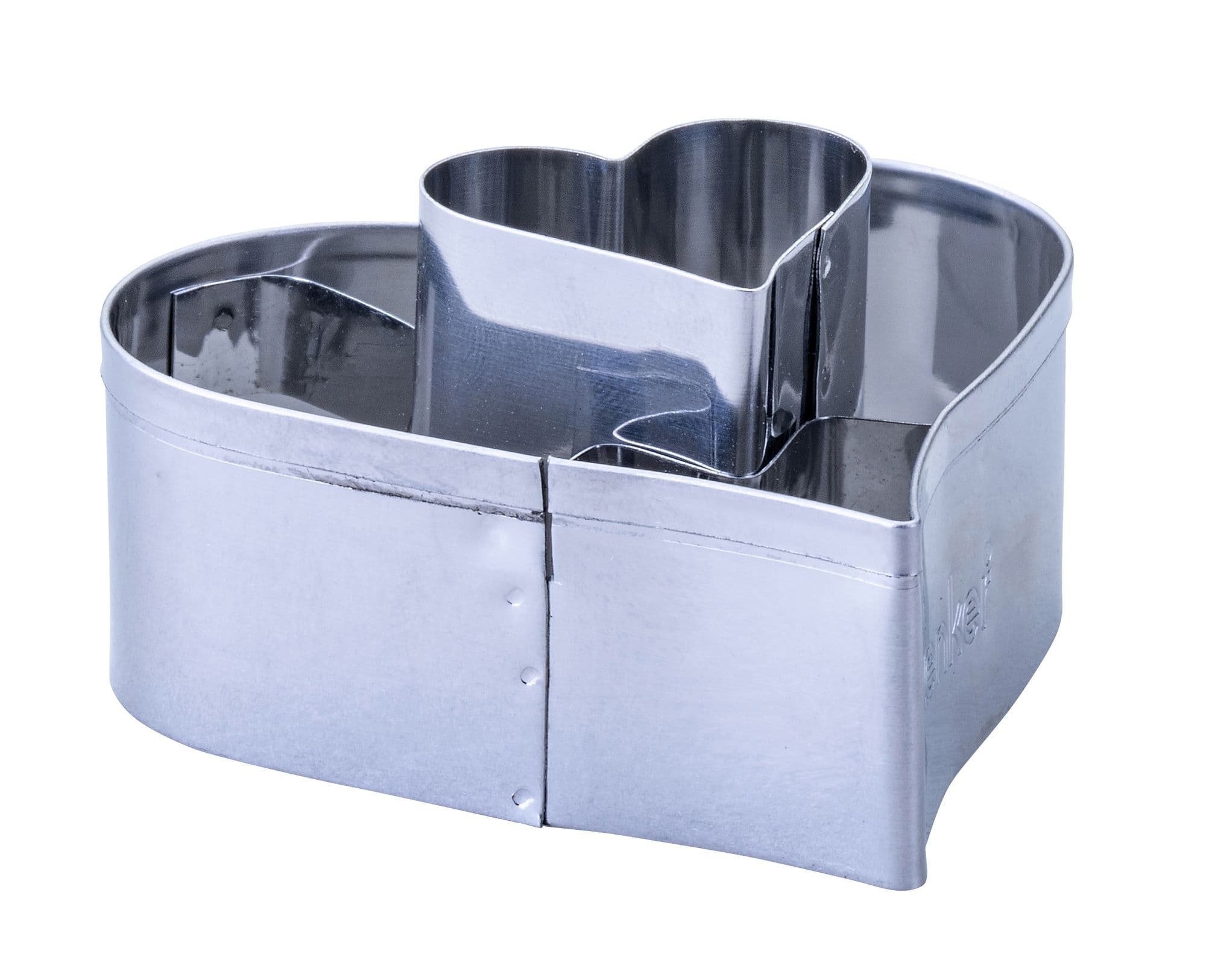 Der 2in1-Ausstecher „Linzer Herz“ aus der Serie „The Christmas Candy Shop“ von Zenker ist aus rostfreiem Edelstahl gefertigt und spülmaschinengeeignet. Mit 6,5 x 6,5 x 4 cm Größe sticht er wahlweise ein großes oder kleines Herz aus – perfekt für Linzer Plätzchen. In schöner Geschenkverpackung mit Platz für den Namen des Empfängers, designed in Germany.
