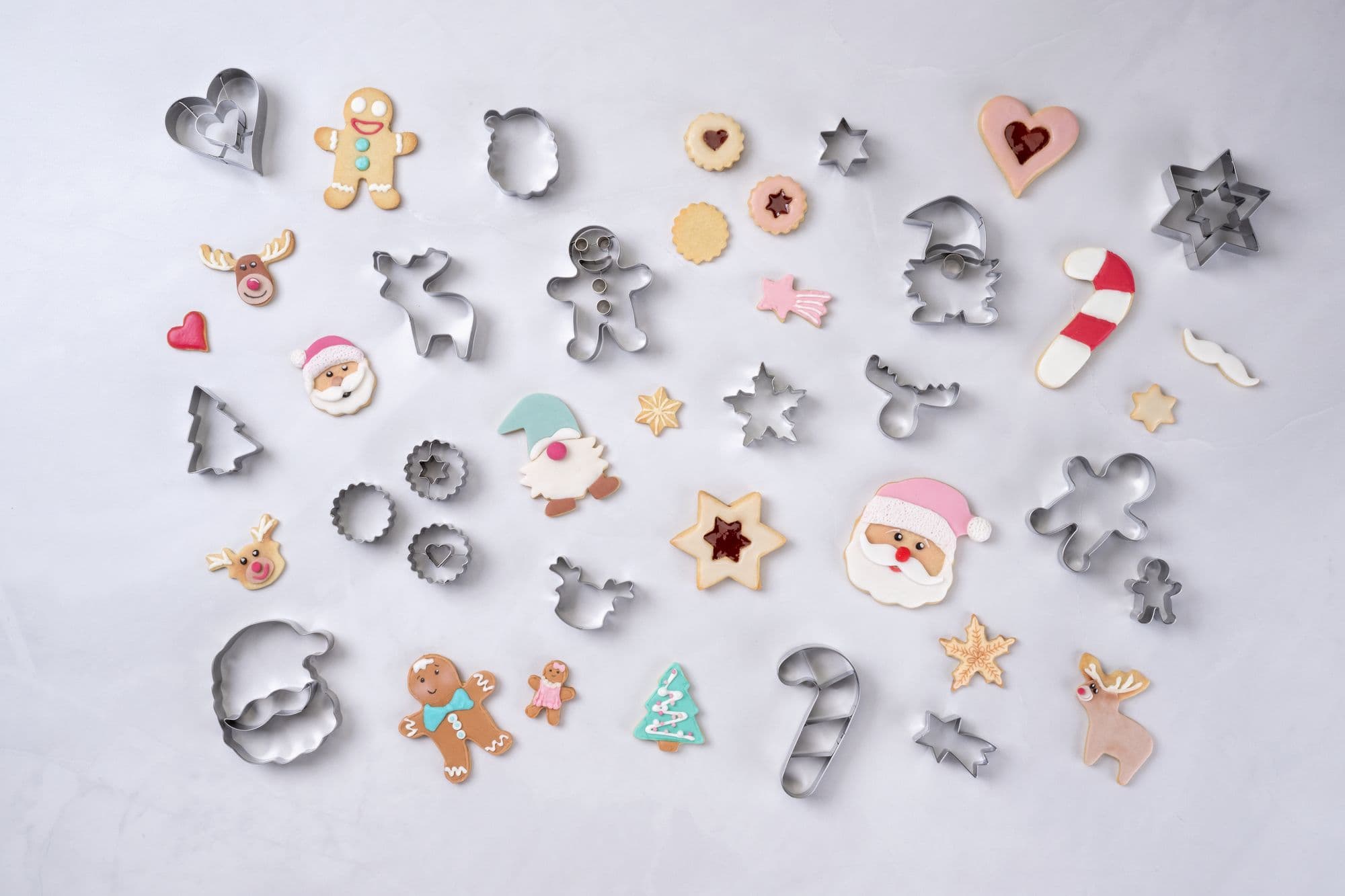 Das 90-teilige Ausstecher-Set „The Christmas Candy Shop“ von Zenker enthält zehn weihnachtliche Motive wie Schneeflocke, Elchkopf, Engel, Schneemann, Zwerg, Tannenbaum, Sternschnuppe und Herz – jeweils zehnmal. Aus verzinktem Weißblech in Silberoptik, Maße: 7,2 x 6,5 x 1,5 cm. Ideal für Kekse, Plätzchen und Lebkuchen, Reinigung von Hand und im festlichen Design – perfekt für die Weihnachtsbäckerei.