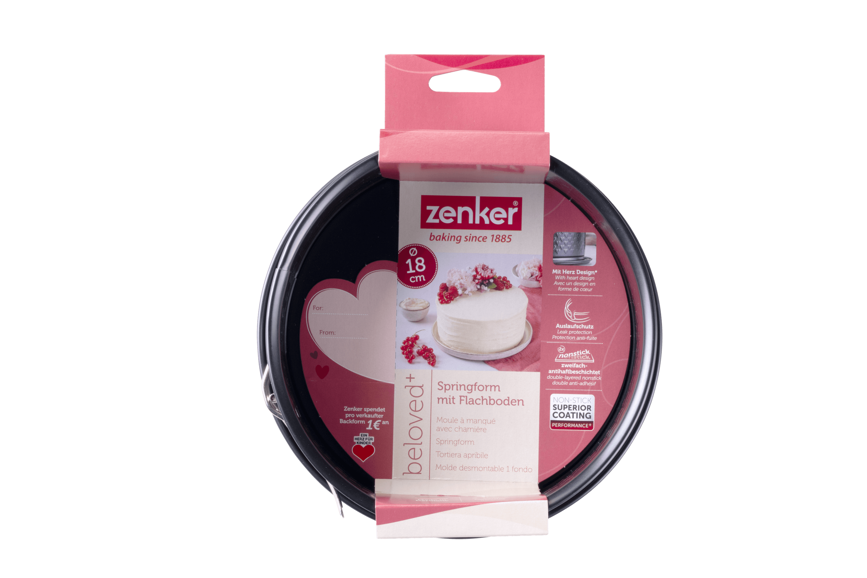Die Springform „Perfect Black+“ von Zenker (Ø 18 cm) besteht aus robustem Stahlblech mit Rillenprägung und PFAS-freier Antihaft-Beschichtung. Sie ist hitzebeständig bis zu 230 °C und kann einfach per Hand gereinigt werden. Die Form ist Made in Germany, inklusive 5 Jahre Garantie.
