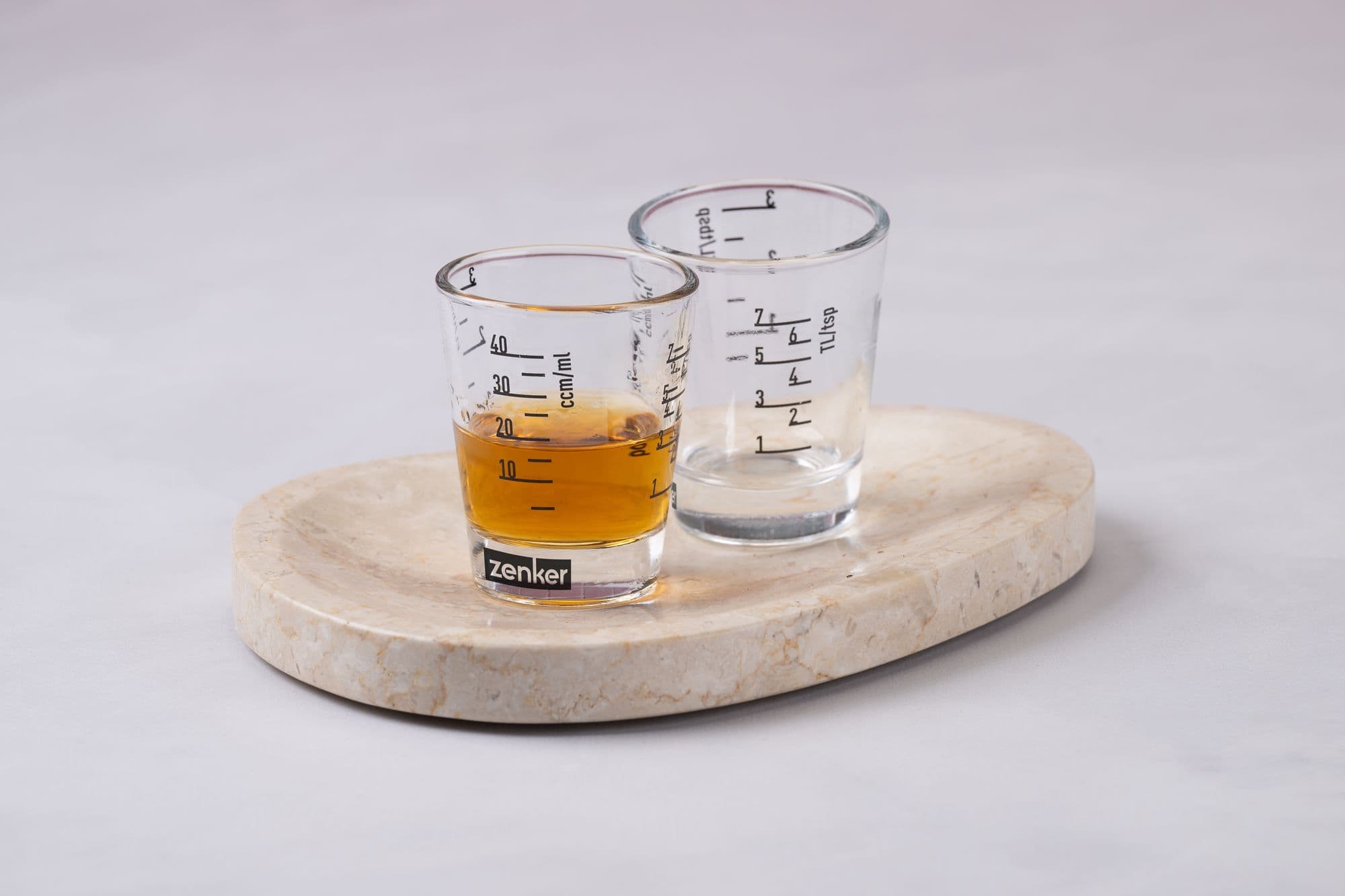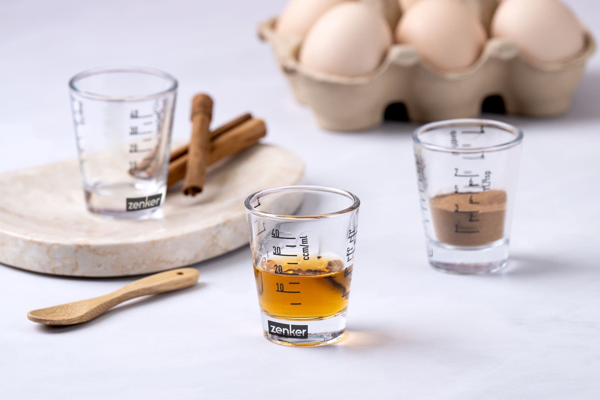 Der Mini-Messbecher The Christmas Candy Shop von Zenker fasst 40 ml und eignet sich ideal zum präzisen Abmessen kleiner Mengen. Er ist transparent, mit Skalen in ccm/ml, TL/tsp und EL/tbsp versehen, spülmaschinengeeignet und bis +70°C hitzebeständig. Mit 5 x 5 x 6 cm handlich und perfekt für die Weihnachtsbäckerei.