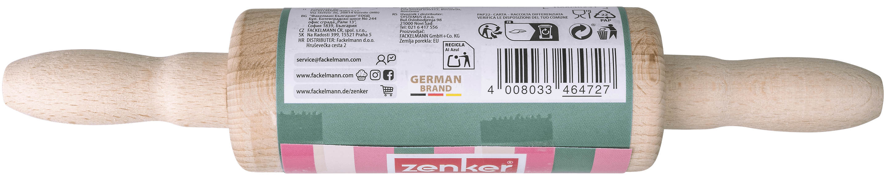 Die Teigrolle von Zenker besteht aus Buchenholz. Sie hat die handlichen Maße von 23x4,5cm. Mit dieser vielseitigen Walze können Teige, Fondant oder Marzipan einfach und gleichmäßig ausgerollt werden.