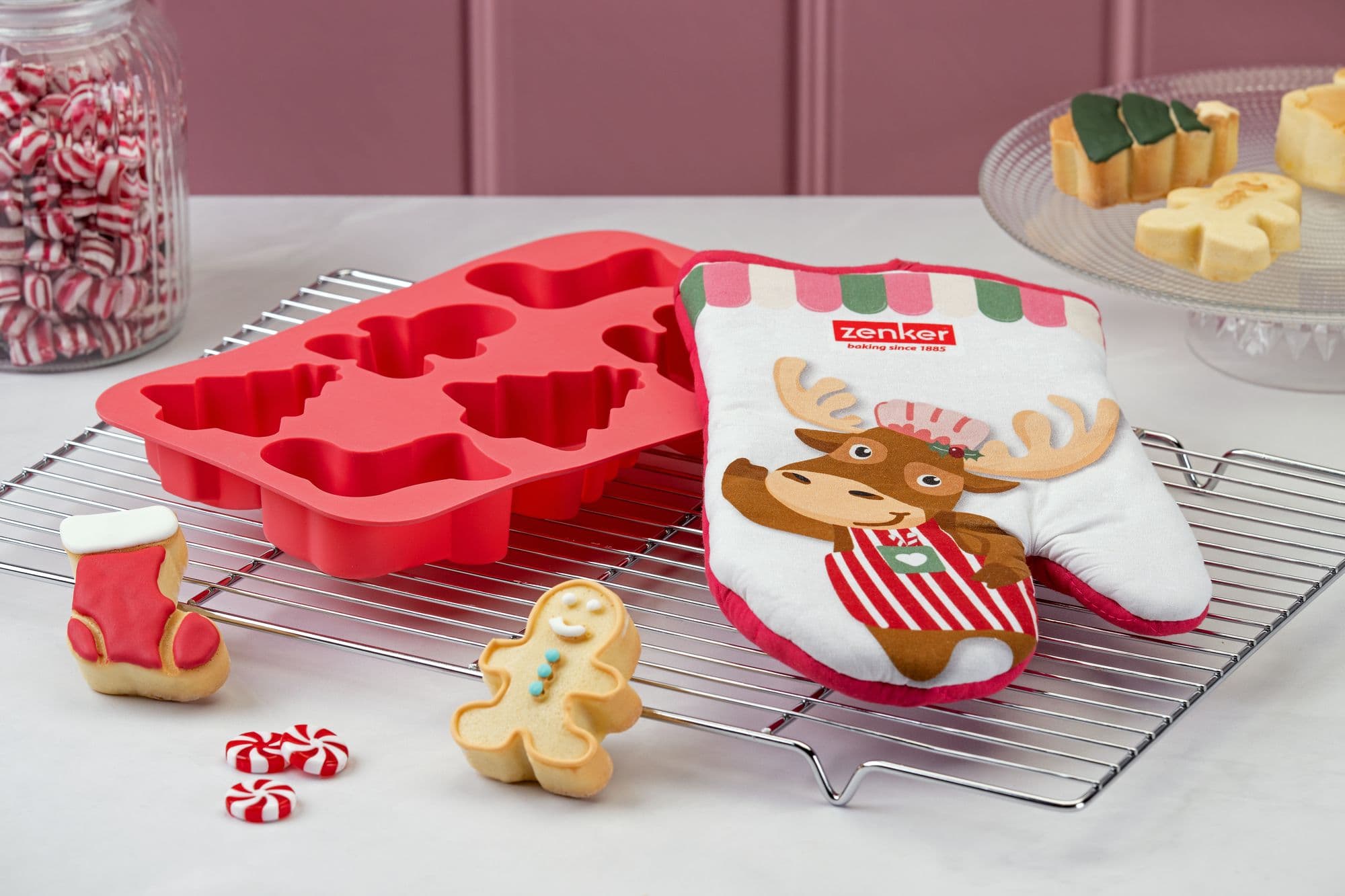 Die vielseitige Form von Zenker ist aus Platin-Silikon in ansprechendem Weihnachtsrot gefertigt und hat die Maße 26 x 16,5 x 3 cm. Sie ist für Minikuchen, Eiswürfel und Schokolade geeignet und bietet mit sechs typischen Weihnachtsmotiven viel Raum für kreatives Zubereiten. Die Form ist spülmaschinen-, mikrowellen- und gefriergeeignet sowie temperaturbeständig von -40 °C bis +230 °C.