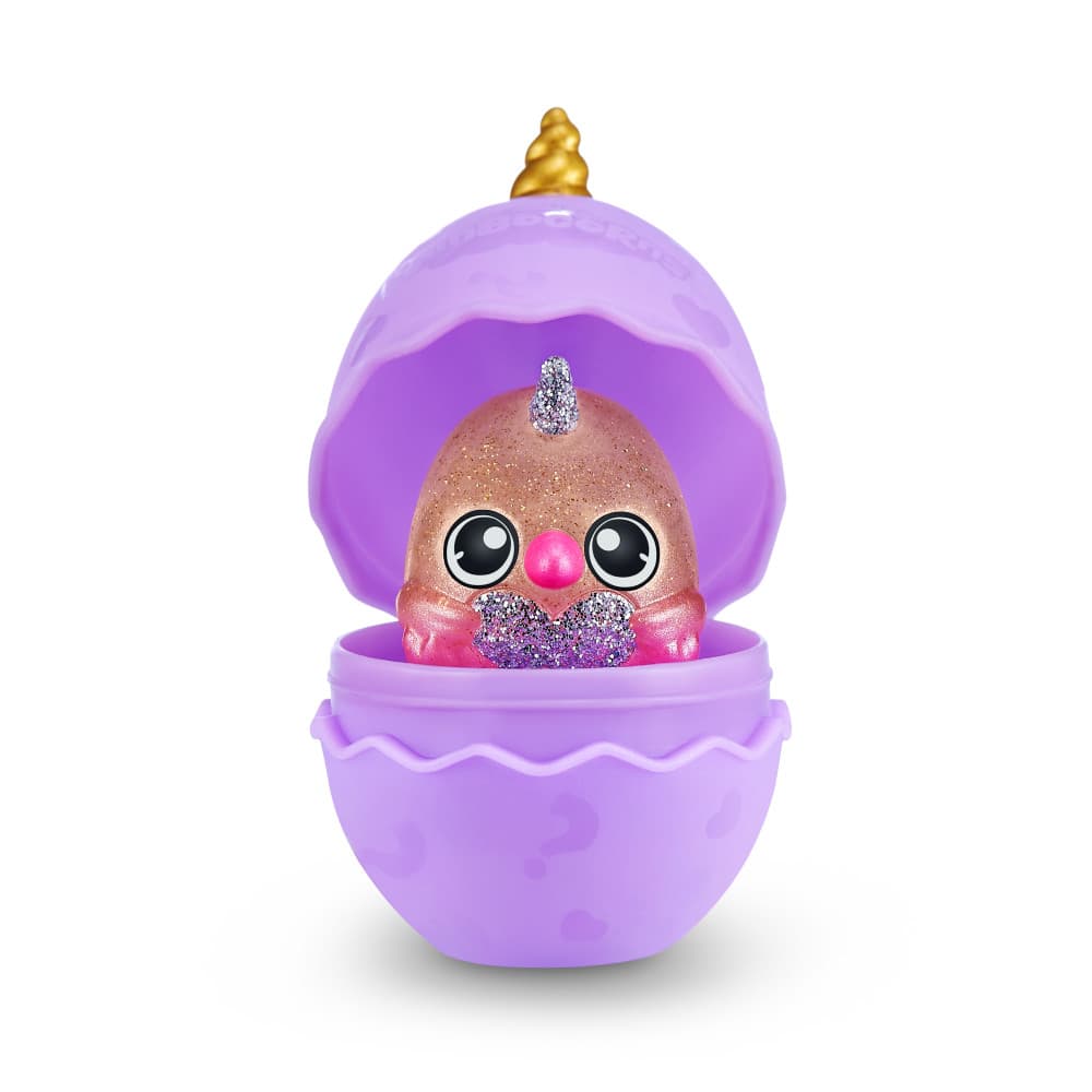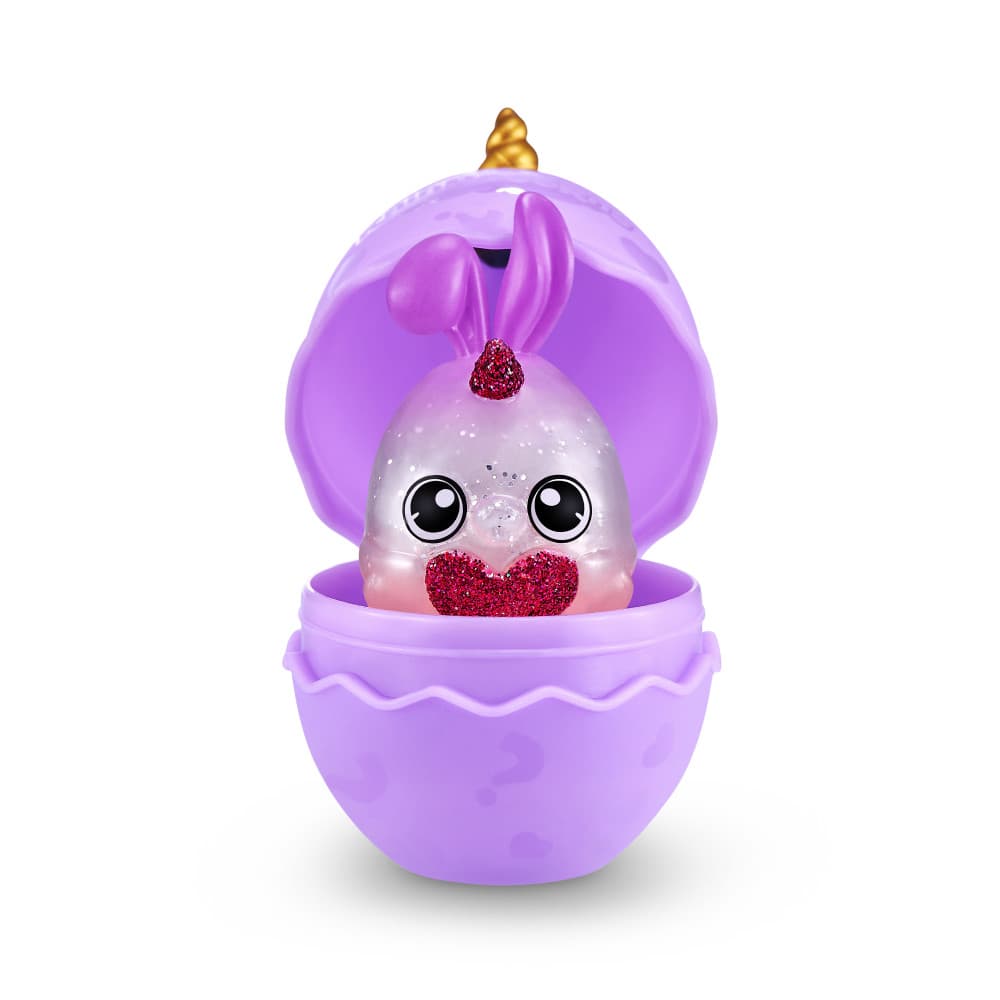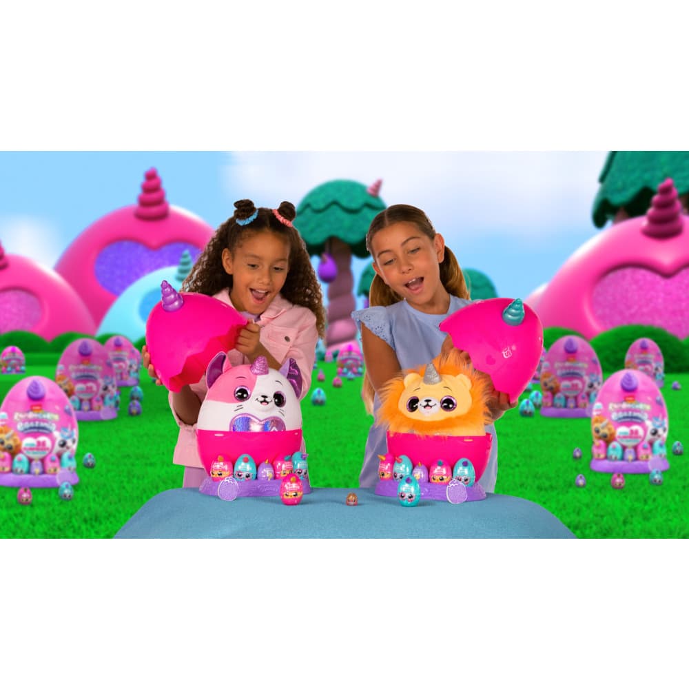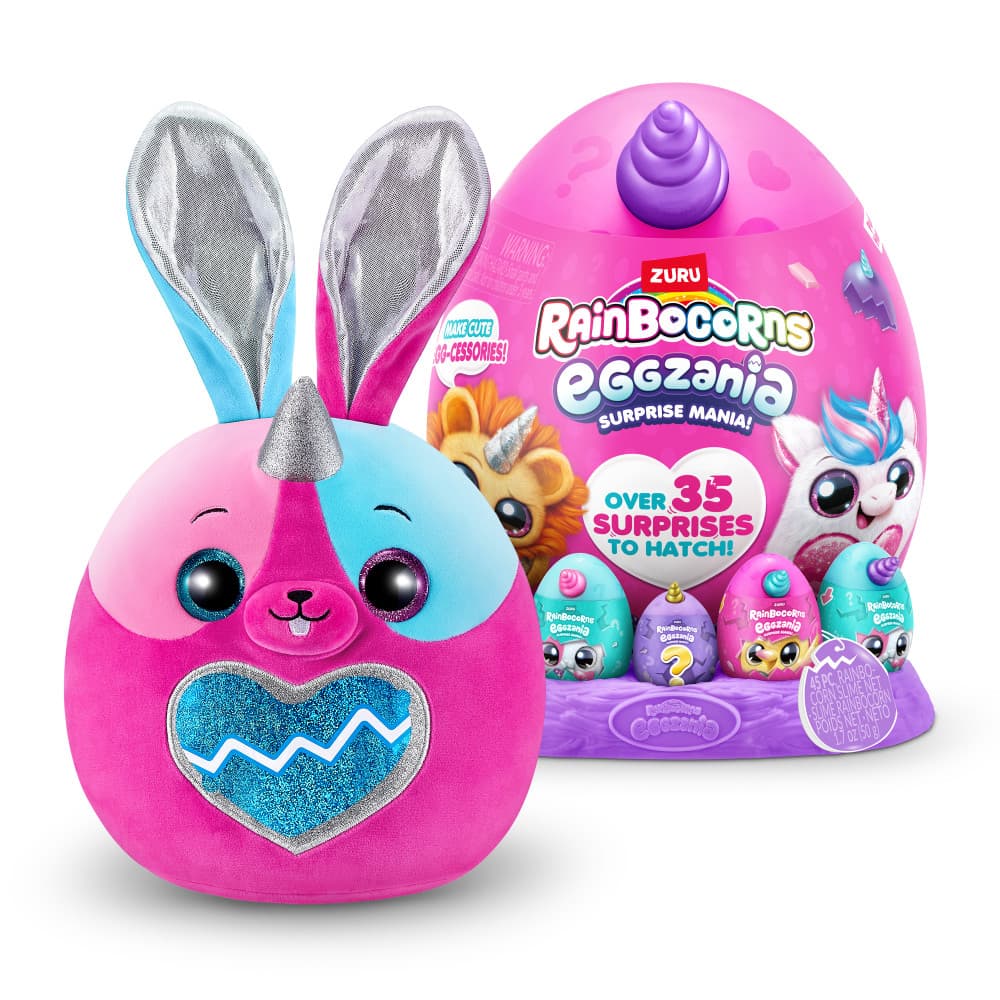 Schlüpfe in das brandneue Rainbocorns Eggzania! Dieses Ei ist voll mit über 20 Überraschungen und brandneuen, niedlichen Rainbocorns-Figuren. Entferne das Ei aus dem Nest, um dein supersüßes Rainbocorns Eggzania-Plüsch auszubrüten! Es gibt 6 Eggzania-Tiere zum Sammeln, darunter Roary der Löwe, Peanut der Elefant und Daffy der Flamingo! Jedes Eggzania-Plüschtier wird mit einem passenden Yolkie, 5 Mini-Eiern, Aufklebern, tragbaren Accessoires und einem Eggzania-Wortspiel geliefert, das dich zum Lachen bringen wird! Betritt Rainboville mit einem Ring, einem Stempel und einem DIY-Armband, die zu deinem Eggzania passen! Diese seidig weichen Rainbocorns lieben es zu kuscheln und werden dich das Leben von der sonnigen Seite aus betrachten lassen! Welches Eggzania wirst du ausbrüten?